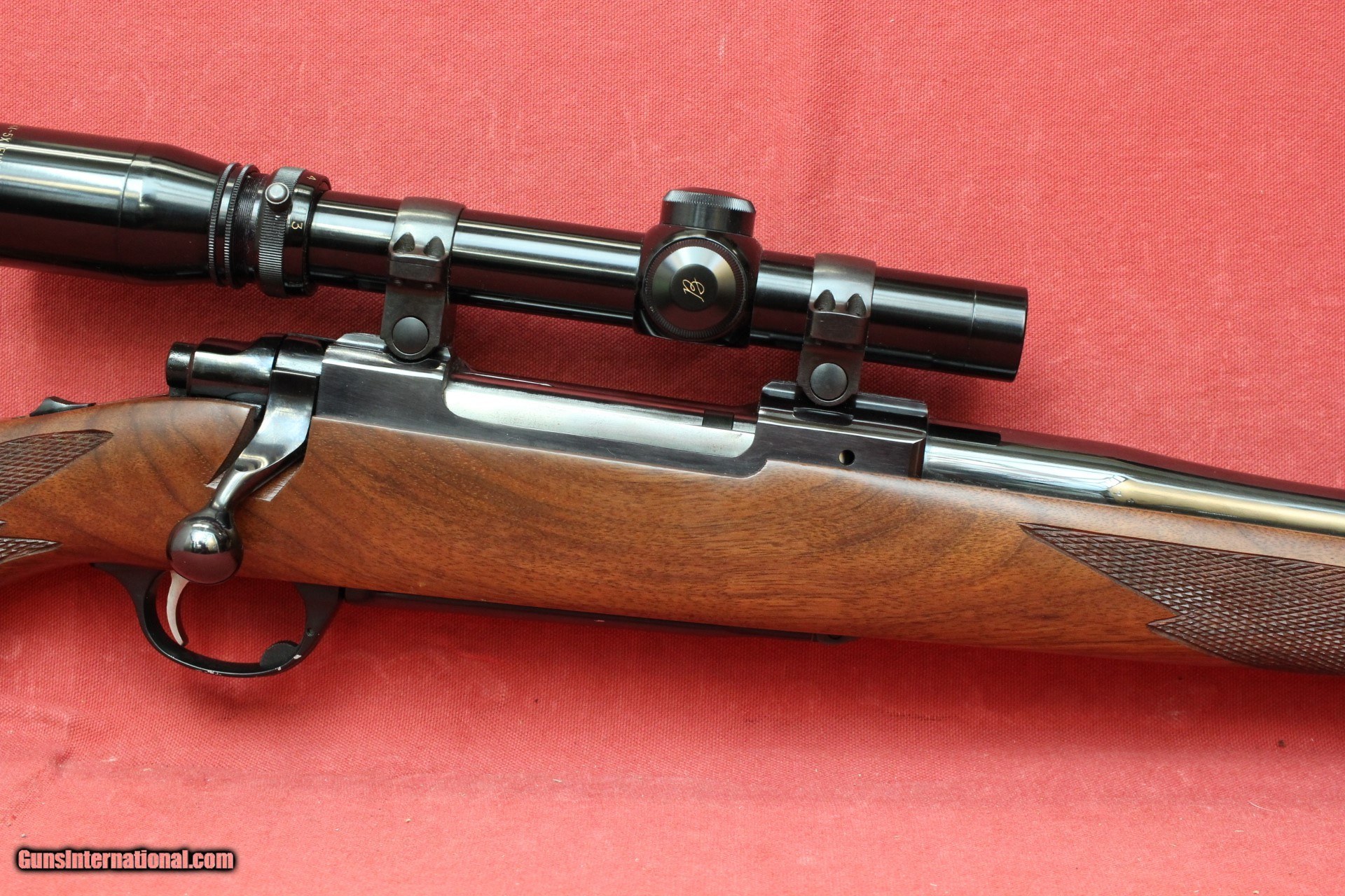 Description: 338 Win Mag, serial number 772-049XX. 24" barrel. Overall in good condition, shows normal wear. Receiver and barrel are excellent, 1" x 1" area of pitting/blue wear on left side of barrel and 2"x1/2" area of pitting/blue wear on top of barrel (see photos). Light marring on floorplate and trigger guard. Bore is excellent. Wood shows light marring, especially on left side of stock, comb and tip of forend. Rear sling swivel shows heavy rust. Comes with rings and Burris 1.75x5 scope. More photos on request. Please add $40.00 for shipping and insurance. SOLD |