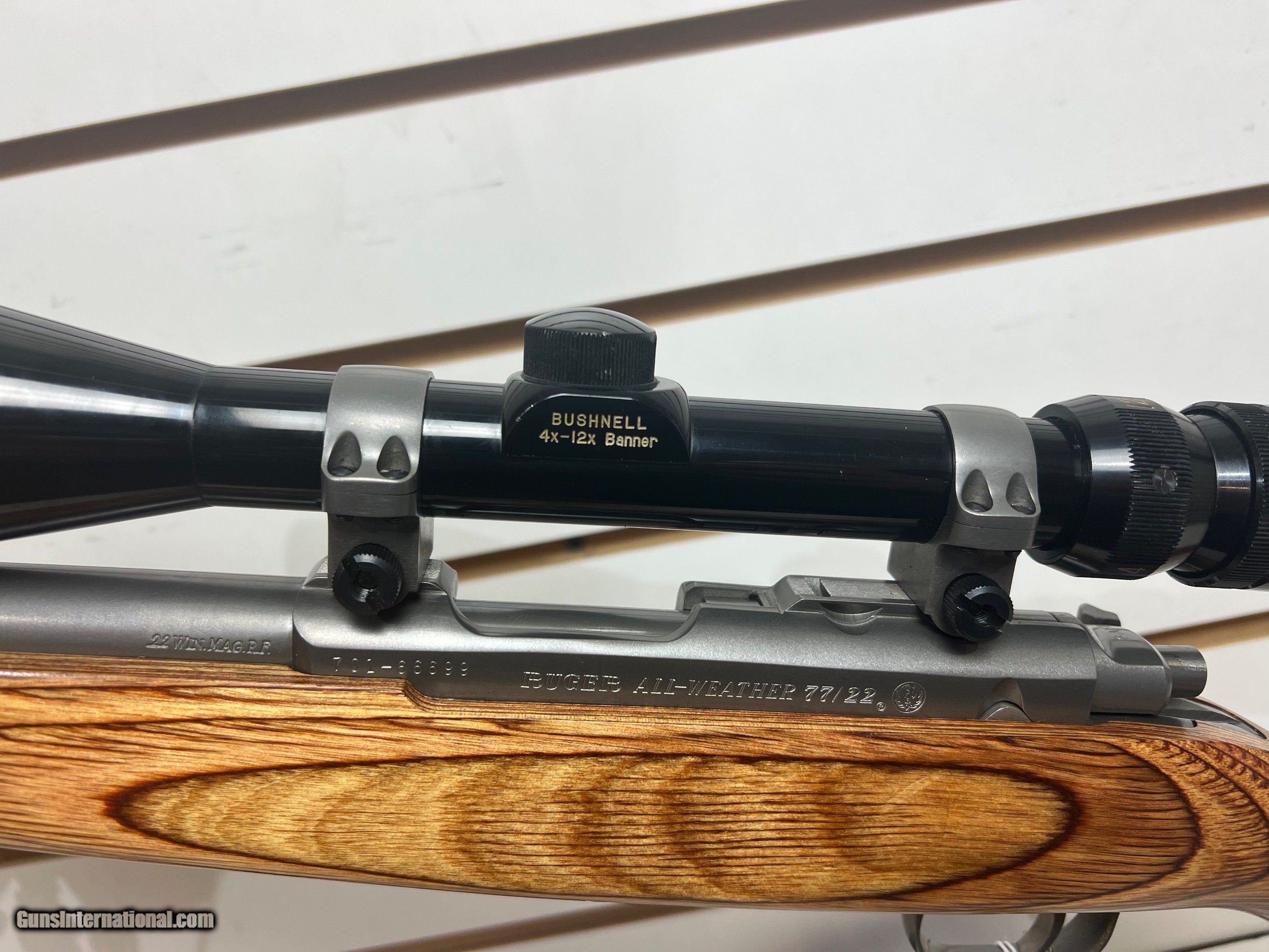 Used Ruger 77 22 magnum Bushnell 4-12x scope 24" barrel 1 10 round mag strap adjustable bi-pod very good condition