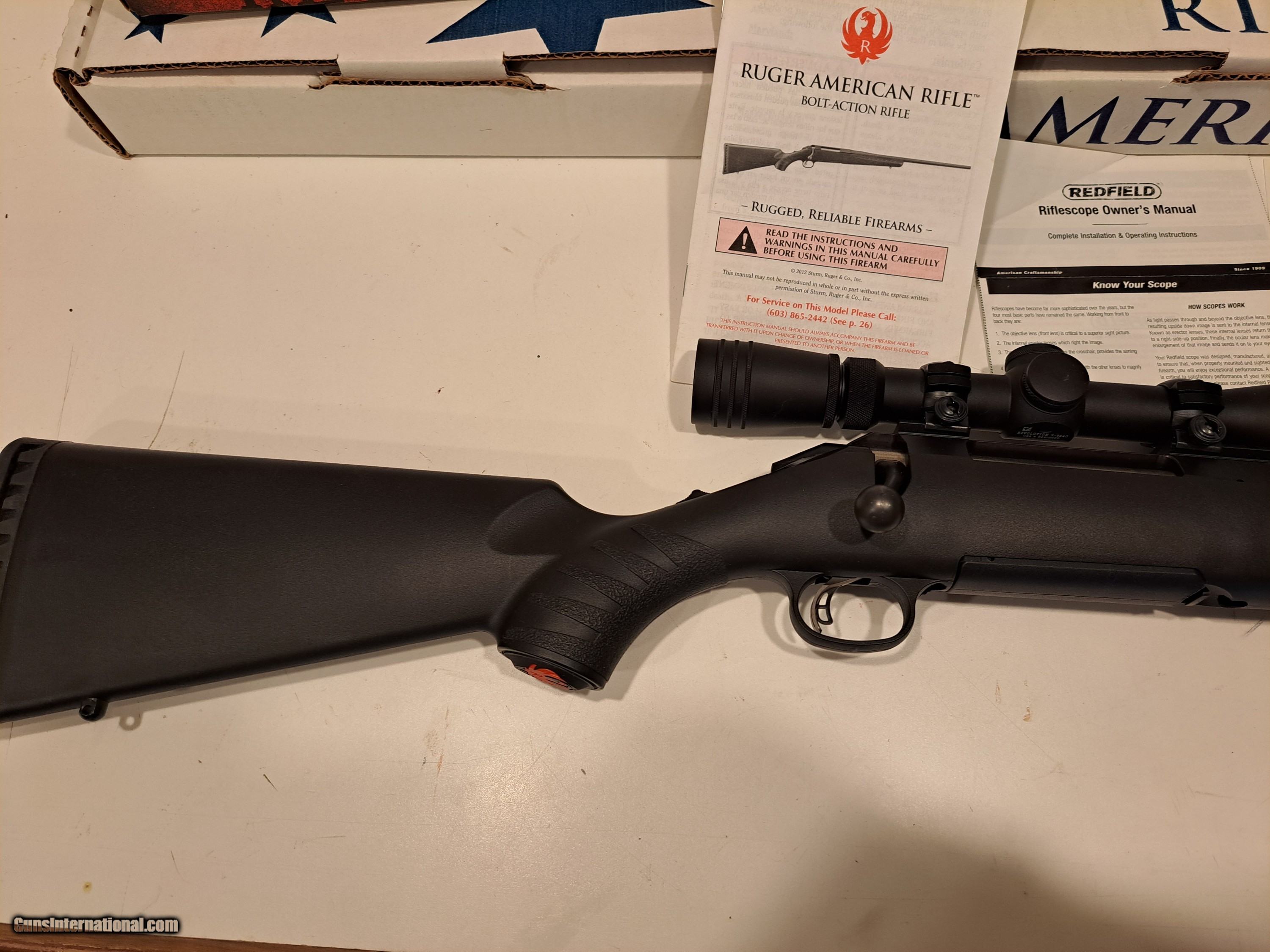 Description: RUGER AMERICAN 30.06 SPRINGFIELD Model 6901 Serial 691-21806 Purchased NEW 2013, Shot 16 rounds to sight it in, Cleaned, never shot again. The gun is spotless and perfect. Owners manuals and original boxes for Rifle and Scope Includes: 44 Rounds Hornady Whitetail #8108 and 16 spent cases Extra Ruger 4 round clip Ruger Rifle Sling and clips REDFIELD REVOLUTION 3-9X40mm SCOPE (Now Leupold) Matte Accu-Range 67095 Serial 368697AA --------------------------------------------------------------------------------------------------------------------------------------- Total Package Value $902.88 Gun $499.99 Scope $249.99 Ammo $70.00 Sling & Swivels $39.95 Extra Clip $42.95 Rifle Specs and Features: