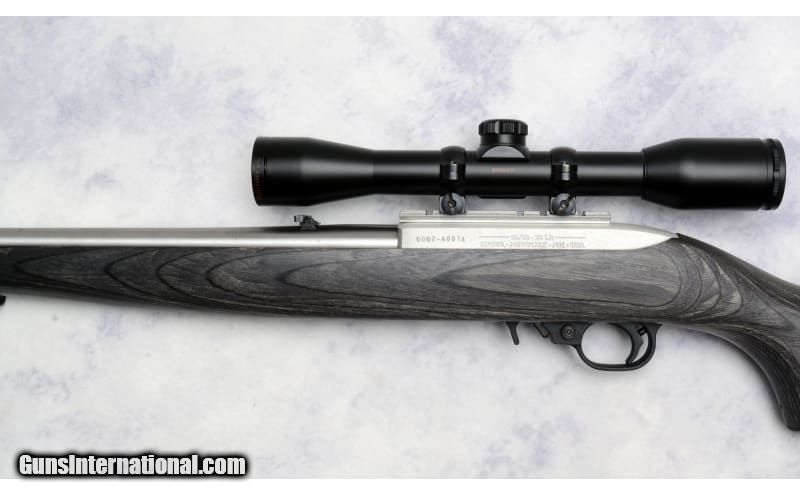 Description: This Ruger 10/22 Mannlicher features; 18.5" Stainless Barrel chambered in .22 Long Rifle, Stainless Receiver, Grey Laminate Mannlicher Stock, Bushnell Banner 4X (?) Scope, Adjustable Diamond Notch Rear & Blade Front Sights, Extended Magazine Release. Comes with One (1) 10-Round Rotary Magazine. No Box, No Manual. .22 Long Rifle SOLD Chambers: .22 Long Rifle Metal Condition: Good Wood Condition: Excellent Bore Condition: Excellent Barrels: 18.5" Stainless Sights: Bushnell Banner 4X (?) Scope; Adjustable Diamond Notch Rear; Blade Front Item Location: Green Bay |