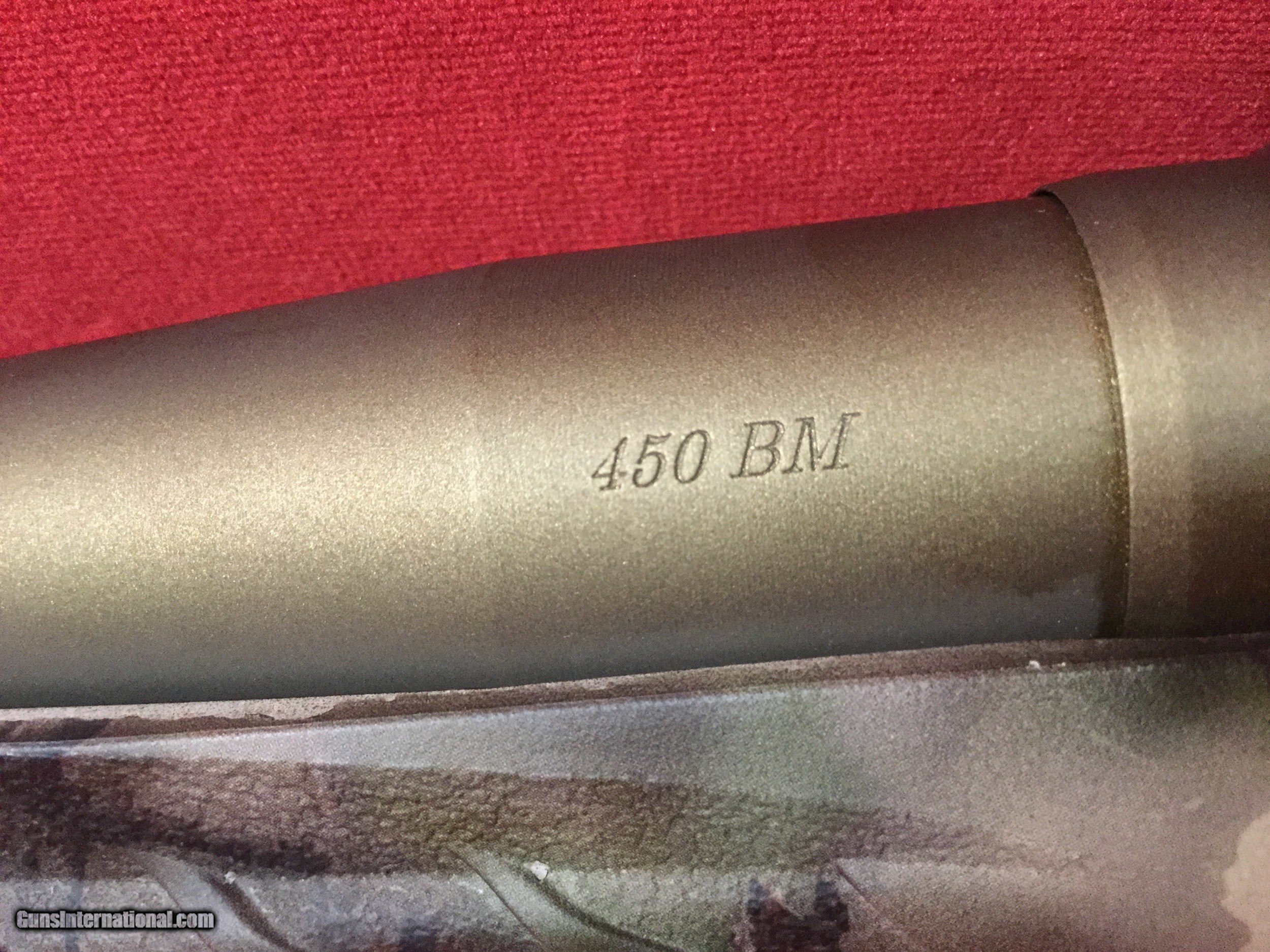 Description: ~~New~~ Ruger 26928 American 450 Bushmaster 3+1 22" GoWild Camo I-M Brush Bronze Cerakote. $549.99 plus $40.00 insured and shipped to your FFL dealer of choosing. Add 4% for credit card payments. "Ruger's American Rifle offers minute-of-angle accuracy that can make every hunt a success. The one-piece, three-lug bolt with 70 degree throw provides ample scope clearance and utilizes a full diameter bolt body and dual cocking cams for smooth, easy cycling. Its patent-pending Power Bedding, integral bedding block system positively locates the receiver and free-floats the barrel for outstanding accuracy. The ergonomic, lightweight synthetic stock with soft rubber buttpad is designed for quick, easy handling and blends a classic look with modern forend contouring and grip serrations. The American Rifle also has a Ruger Marksman adjustable trigger, cold hammer-forged barrel, and a tang safety. This Standard model is chambered in 450 Bushmaster and has a 22" cerakote bronze barrel and a Go Wild camo IM Brush synthetic stock." -Sports South SOLD |