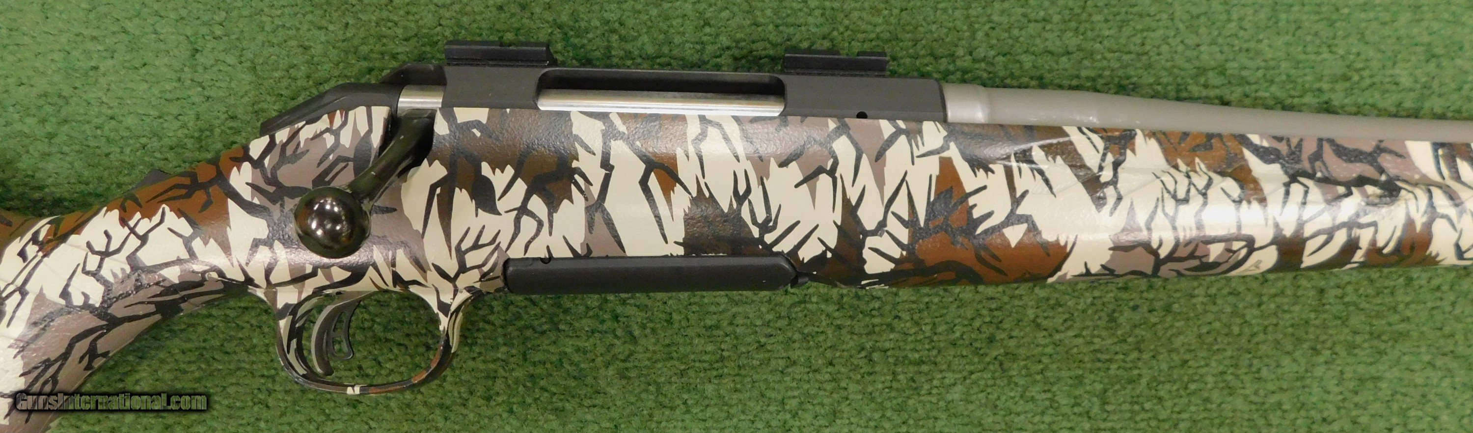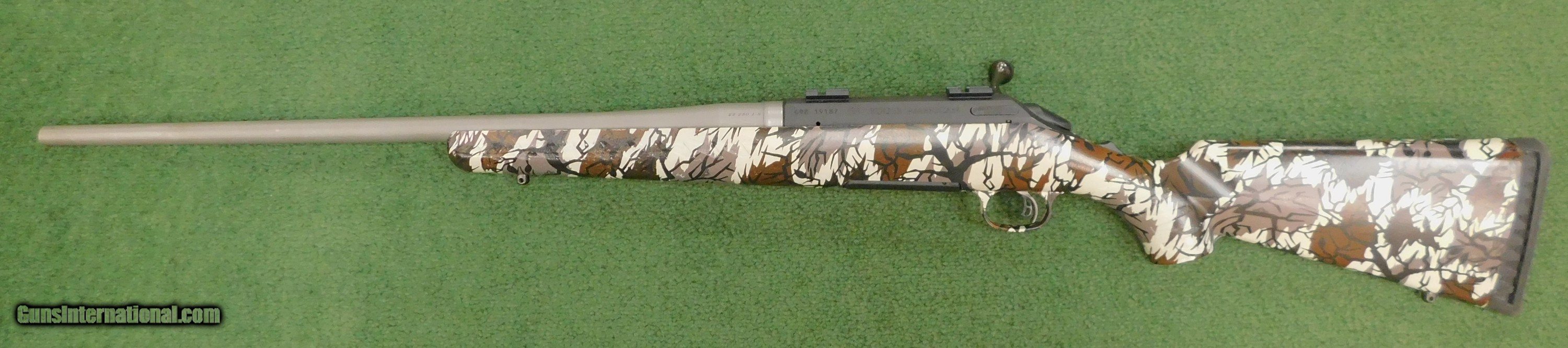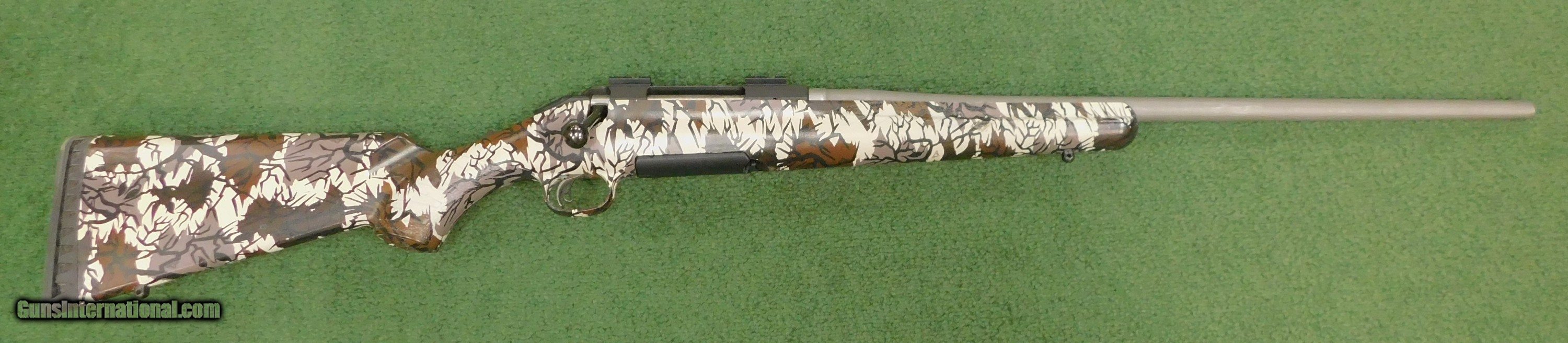 Description: Ruger american, factory stainless 1-8 twist barrel, 22-250 rem, camo dipped stock, SOLD |