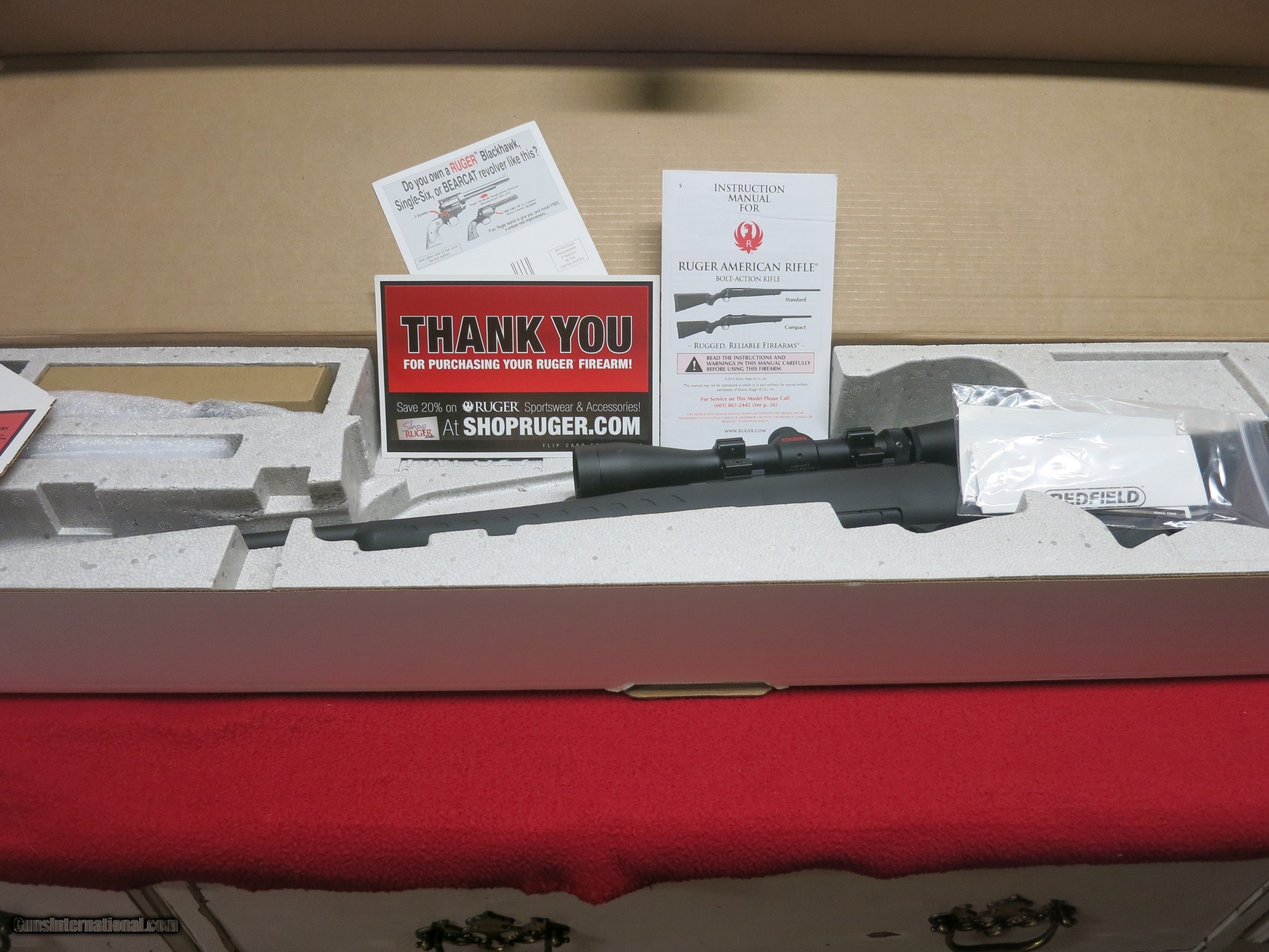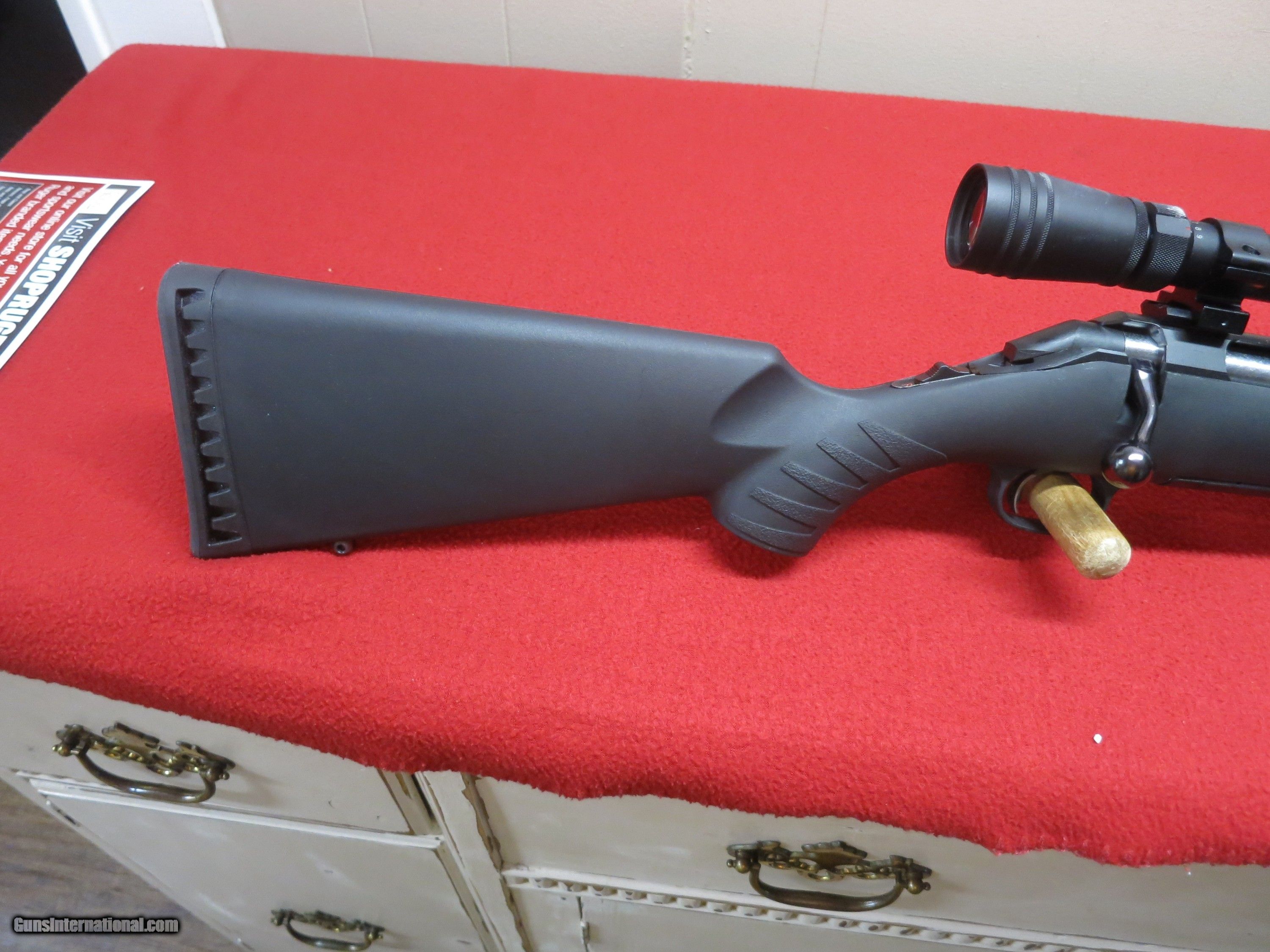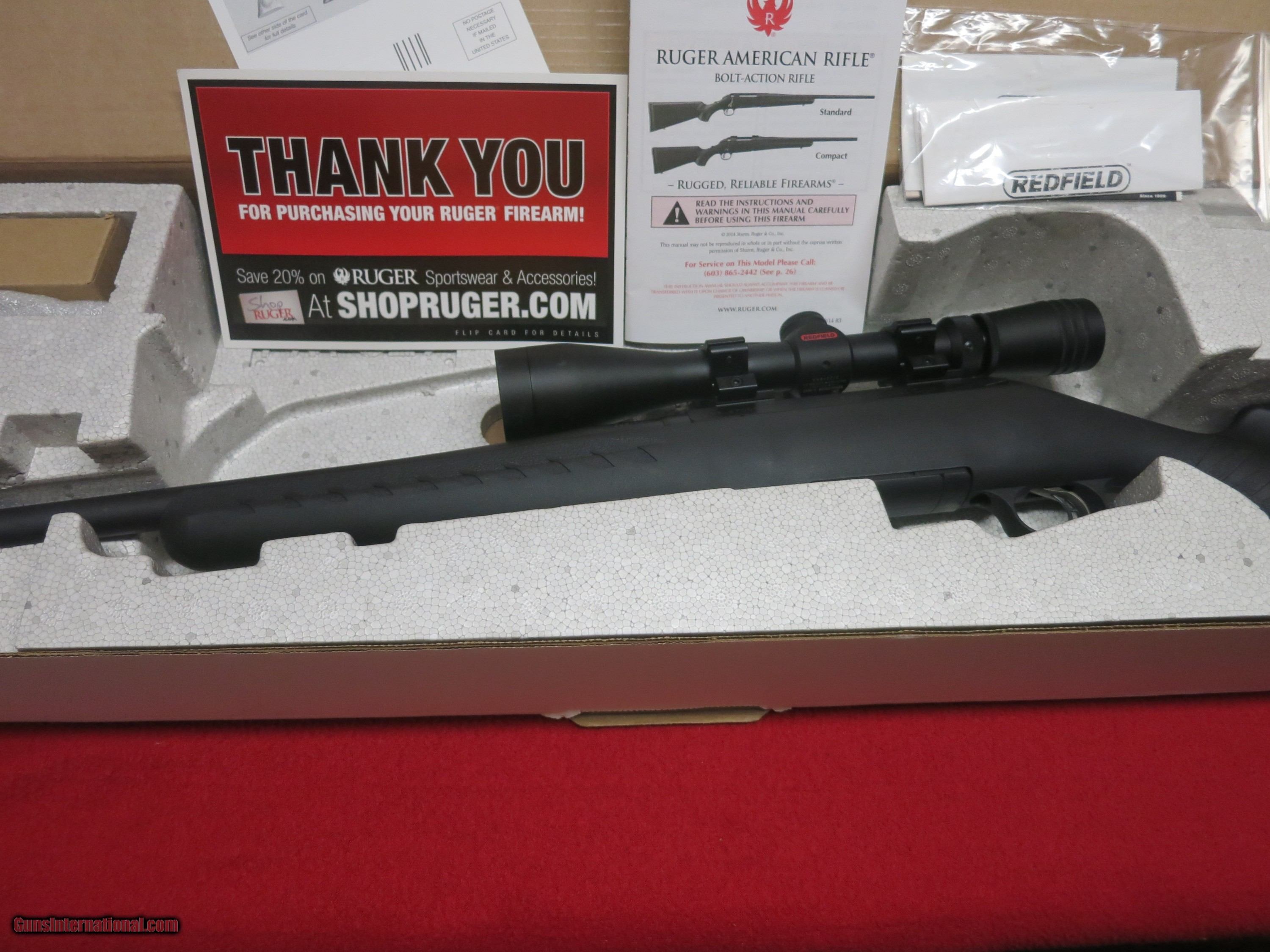 Description: RUGER AMERICAN ANIB IN .223 CAL. EXCELLENT CONDITION. MAY NEVER HAVE BEEN FIRED. 22" BARREL WITH EXCELLENT BORE. NEAR 100% MATTE BLUE FINISH ON THE BARREL & RECEIVER. BLACK COMPOSITE STOCK WITH ROUGH TEXTURE GRIP POINTS. HAS SLING STUDDS AND BLACK RUBBER BUTT PAD. COMES FITTED WITH A REDFIELD 3x-9x SCOPE WITH DUPLEX RETICLE & CLEAR OPTICS. CALL OR E-MAIL WITH QUESTIONS; SOLD |