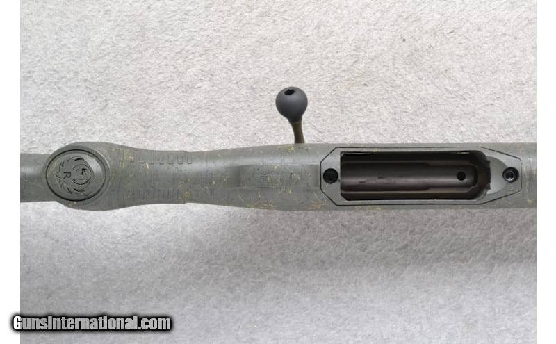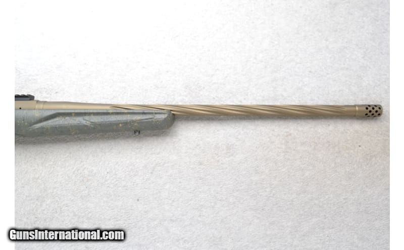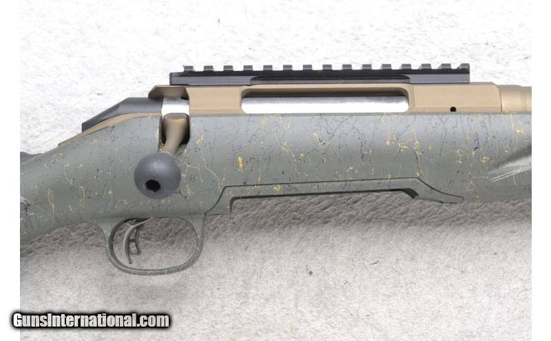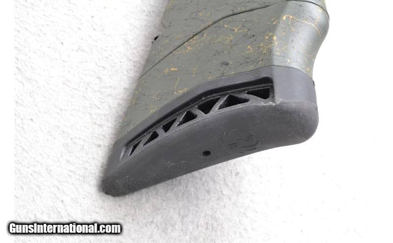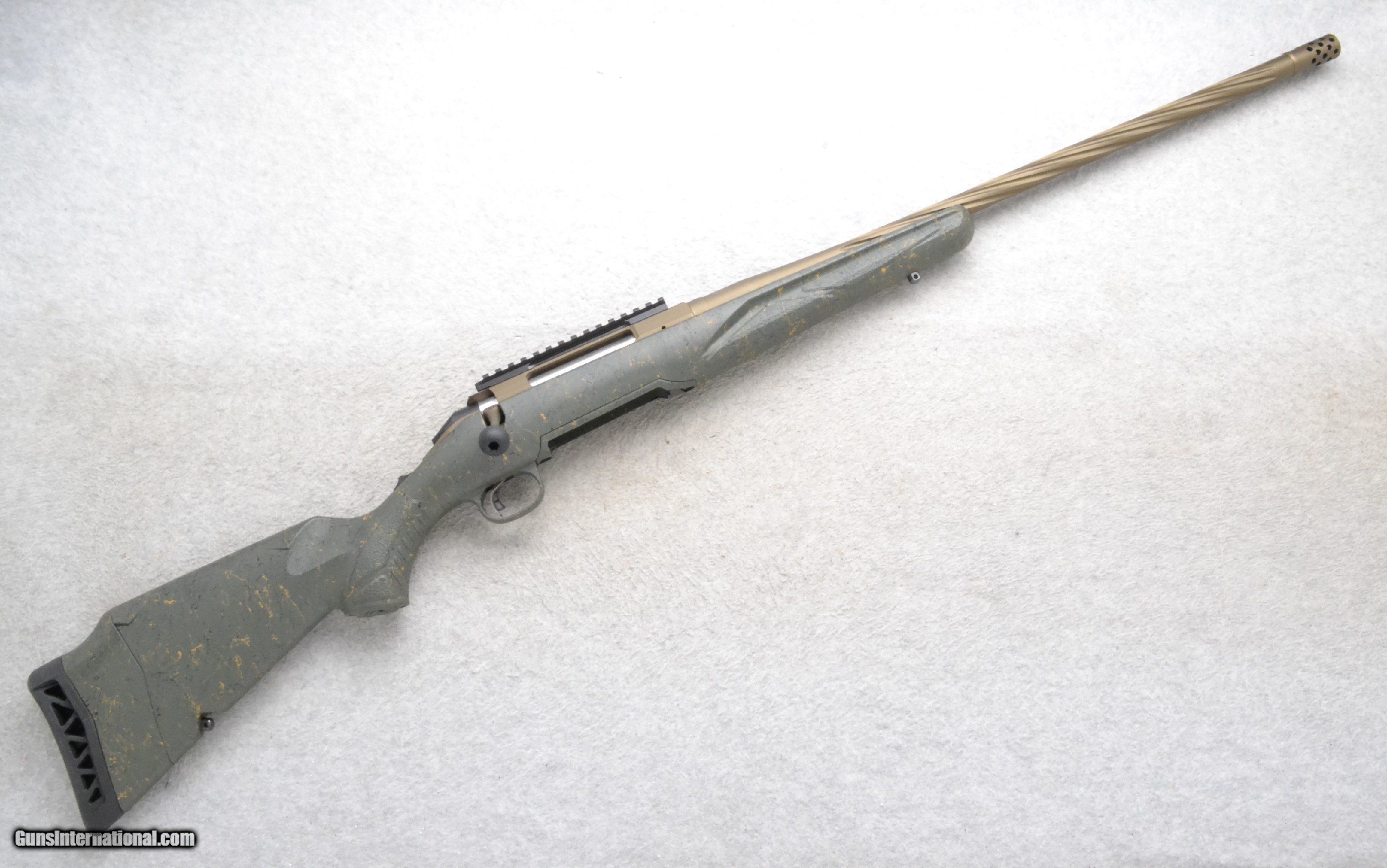 Description: This Ruger American is a right-hand bolt action rifle in .30-06 Springfield Cal. The barrel is 23 inches long, fluted, Cerakoted, with a muzzle brake. It has a Ruger Marksman Adjustable™ trigger. It has a mounted top optic rail. The forearm is splattered green polymer with finger grooves. The stock is a splatter green polymer pistol grip with a textured and grooved grip, and a cap. It has a black rubber recoil pad. It includes one magazine. .30-06 Springfield .30-06 Springfield SOLD Chambers: 5 round detachable magazine Metal Condition: Excellent Bore Condition: Excellent Barrels: "StartFragment23"", fluted, muzzle brake, CerakotedEndFragment Triggers: StartFragmentRuger Marksman Adjustable™ triggerEndFragment Stock Dimensions: LOP 13.75 Fore End: Splattered green polymer with finger grooves Butt Pad: Black rubber recoil pad Weight: 6 lbs 8 oz Sights: Mounted top optic rail Item Location: Richfield, WI |