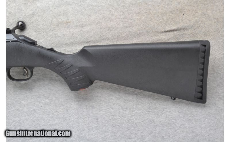 Description: A right hand bolt action rifle in .308 Win. Cal. SOLD Caliber Info: .308 Win. Chambers: Bolt Action 4 round detachable magazine. Metal Condition: Very good with some minor handling marks. Wood Condition: Stock is very good with light surface scuff marks. Bore Condition: Excellent. Barrels: 22 inch matte black barrel. Triggers: Ruger AccuTrigger. Stock: Textured grip black polymer pistol grip with a cap. Stock Dimensions: LOP 13 7/8 inches. Fore End: Textured grip black polumer. Butt Pad: Black rubber recoil pad. Weight: 6 lbs. 3 oz. Sights: Accessory rail on top of the receiver. No iron sights. Extras: Comes in a box. Sling swivel studs. Item Location: Richfield, WI |