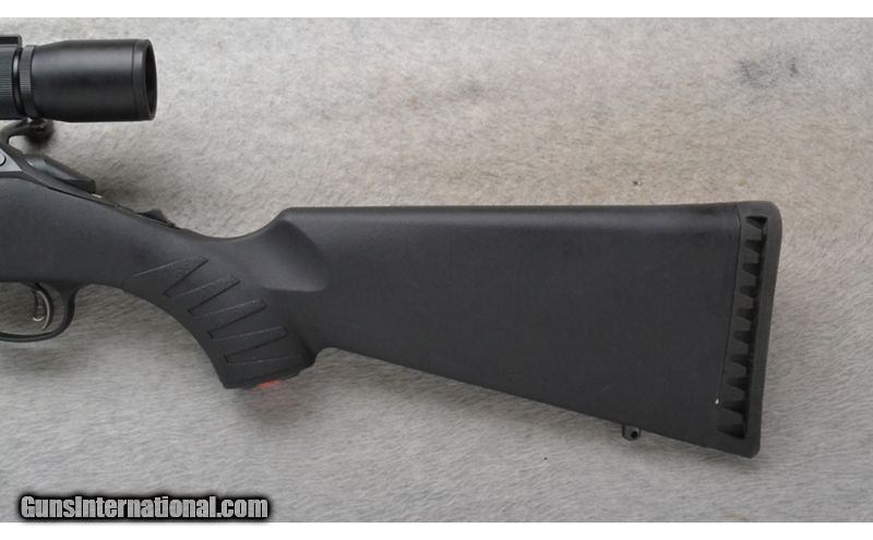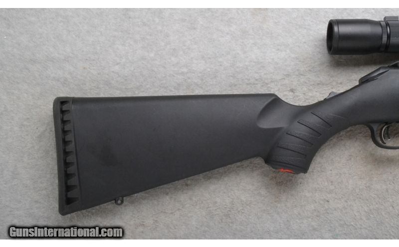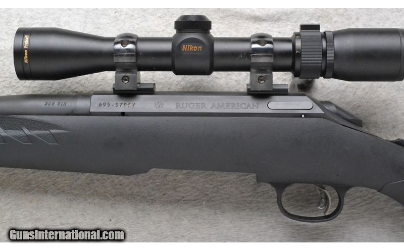 Description: This Ruger Model American is a right hand bolt action rifle in .308 Win. Cal. It has an 18.5 inch barrel. It is outfitted with a Nikon Prostaff Scope. No iron sights. The butt stock is a textured grip black polymer pistol grip. The forearm is a textured grip black polymer with finger grooves. .308 Winchester SOLD Chambers: Detachable Magazine. Metal Condition: Very Good. Bore Condition: Excellent. Barrels: 18.5 inch. Triggers: Marksman Trigger. Stock Dimensions: LOP 13 3/4 inches. Fore End: Textured grip black polymer with finger grooves. Butt Pad: Black rubber recoil pad. Weight: 7 lb. 0 oz. Sights: Nikon Prostaff 2-7x32 Scope. No iron sights. Item Location: Richfield, WI |