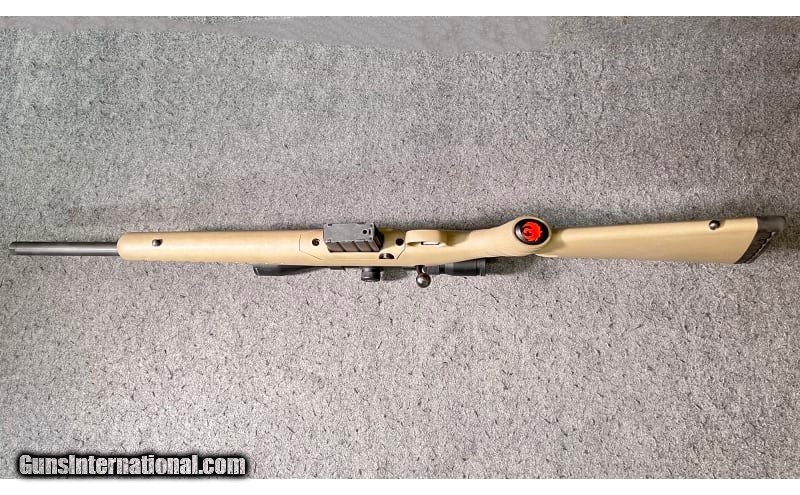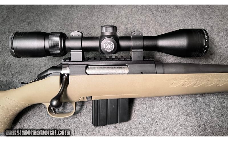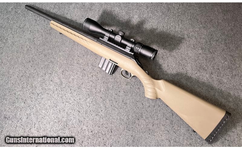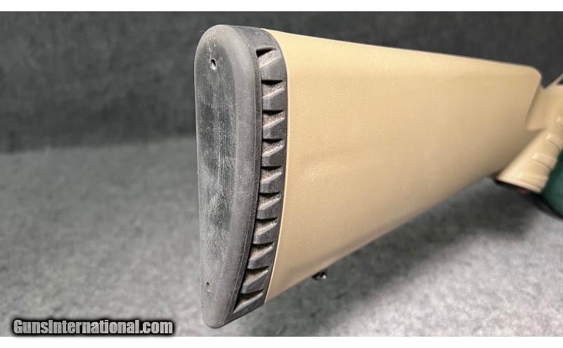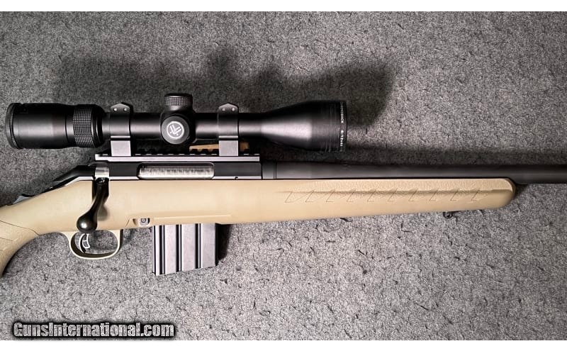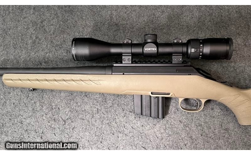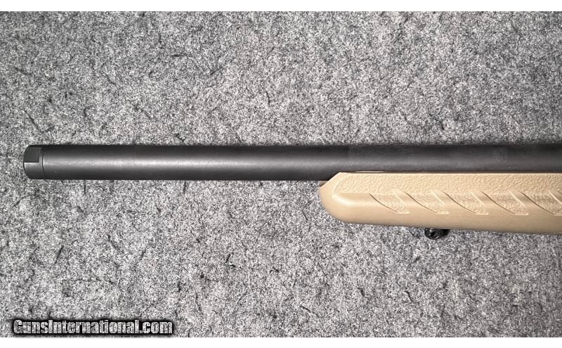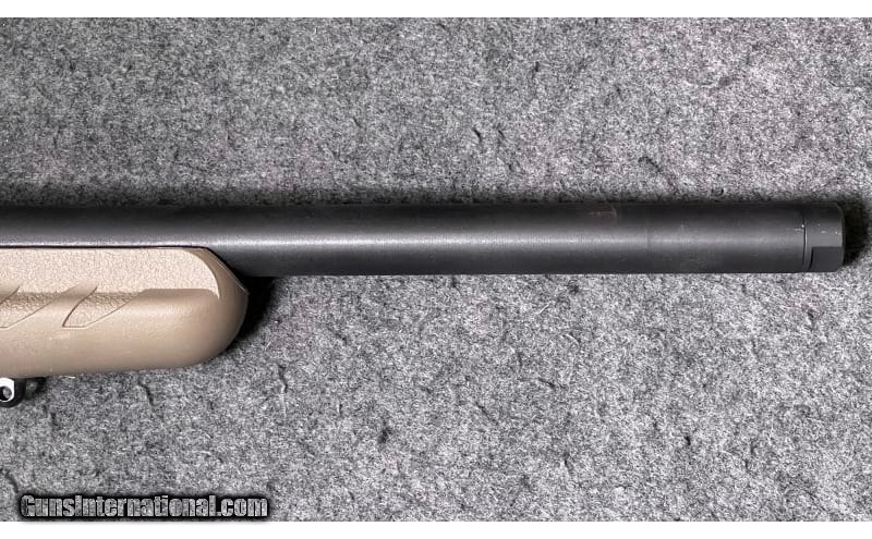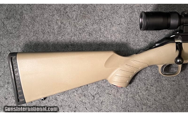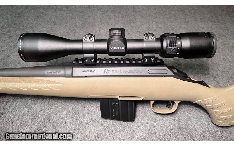 Description: This right hand bolt action rifle is a Ruger American chambered in .350 Legend. It has a one-piece Picatinny scope base, a tang mounted safety lever, a threaded barrel, a right side mounted magazine release button, a textured pistol grip stock, and swivel studs top and bottom. The Ruger American is short and easy to maneuver when getting into and out of vehicles. The Ruger American rifle has an injection-molded synthetic stock with V-shaped, integral bedding blocks. It also has a soft rubber buttpad to help reduce recoil, but the .350 Legend recoils so little (recoil ranges from about 9 ft-lbs to 13 ft-lbs) that the pad is really not needed. The rifle features a full-diameter bolt body with three locking lugs. Bolt throw is 70 degrees. The Marksman trigger is adjustable for pull weight from 3.0 to 5.0 pounds, and the trigger has a safety blade. The rifle also has a two-position tang safety. The bluing is in very good condition with some slight thinning noticeable. Likewise, the synthetic tan stock is in very good condition. It comes with Factory Box, Owner's Manual, decal, other paperwork, cable lock, and a single detachable five round magazine. .350 LEGEND SOLD Metal Condition: Bluing is in very good condition with some slight thinning noticeable Wood Condition: Synthetic tan stock is in very good condition Bore Condition: Bore is bright and shiny with very strong rifling Barrels: 16.1 inch threaded barrel Triggers: Ruger Marksman Adjustable Trigger Stock Dimensions: "13¾ inch LOP, overall length 36⅜ inches Fore End: Semi-smooth serrated fore end Butt Pad: Soft black rubber butt pad Weight: 7 lb 2 oz Sights: Vortex Diamondback 4 - 12 X 40 Item Location: Wichita, KS |