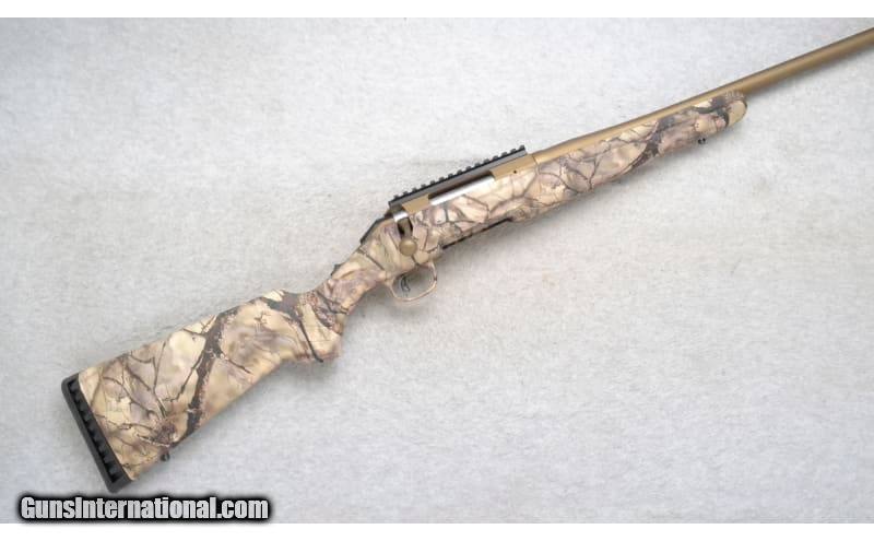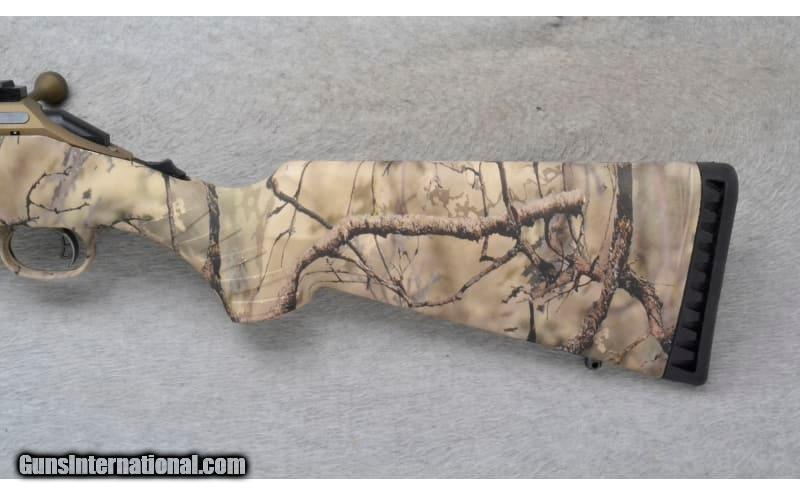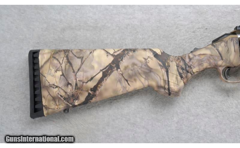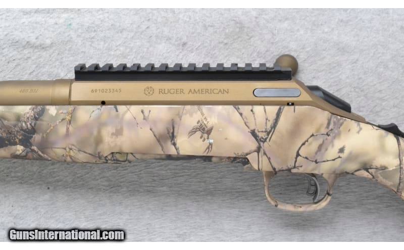 Description: This Ruger Model American is a right hand bolt action rifle in .450 Bushmaster Cal. It has a 22 inch barrel plus a muzzle device. A scope mount base is attached. The butt stock is a textured grip polymer pistol grip. The forearm is a textured grip polymer with finger grooves. It has a Marksman Trigger. Comes in Wild I-M 3RUSH Camo. .450 Bushmaster SOLD Chambers: Detachable Magazine. Metal Condition: Excellent. Bore Condition: Excellent. Barrels: 22 inch plus the muzzle device. Triggers: Marksman Trigger. Stock Dimensions: LOP 13 3/4 inches. Fore End: Textured grip polymer with finger grooves. Butt Pad: Black rubber recoil pad. Weight: 6 lb. 0 oz. Sights: Scope mount base is attached. Item Location: Richfield, WI |