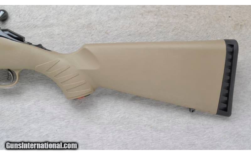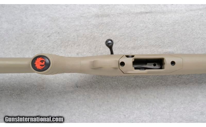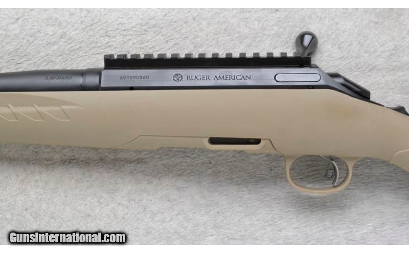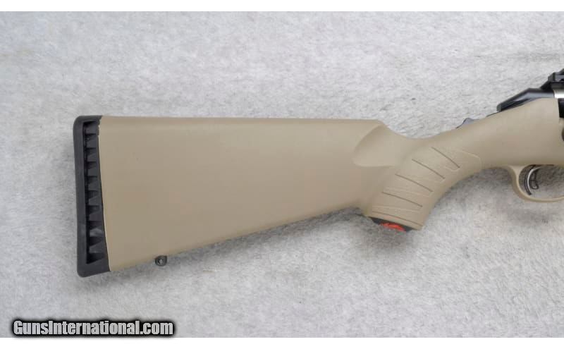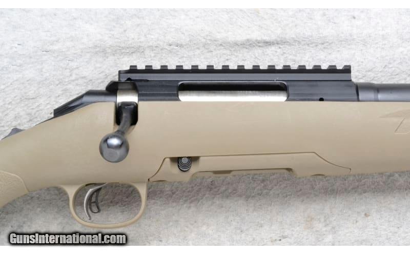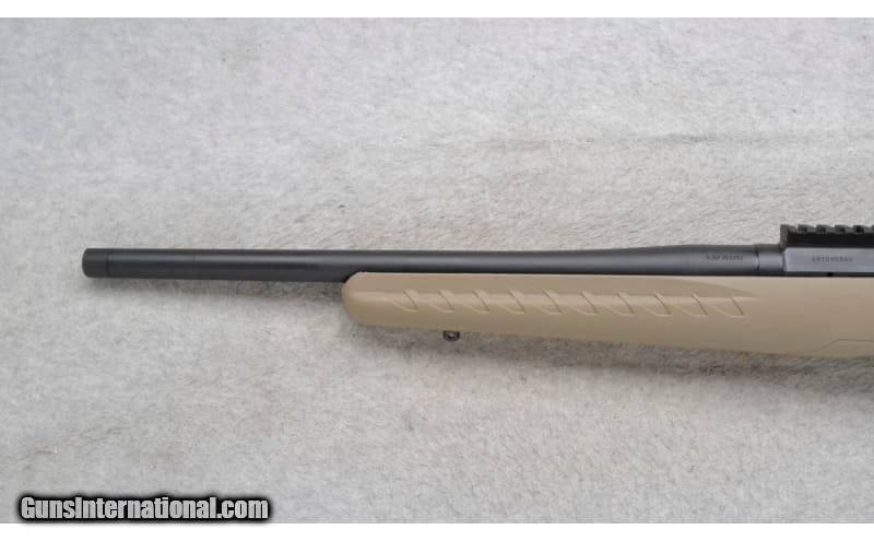 Description: This Ruger Model American is a right hand bolt action rifle in 5.56 NATO Cal. It has a 16 inch matte black threaded end barrel. A scope mount rail is attached. The butt stock is a textured grip tan polymer pistol grip with a black ruger cap. The forearm is a textured grip tan polymer with finger grooves. It has a Marksman Trigger. 5.56x45mm NATO SOLD Chambers: Detachable Magazine. Metal Condition: Excellent. Bore Condition: Excellent. Barrels: 16 inch threaded end barrel. Triggers: Marksman Trigger. Stock Dimensions: LOP 13 3/4 inches. Fore End: Textured grip tan polymer with finger grooves. Butt Pad: Black rubber recoil pad. Weight: 6 lb. 0 oz. Sights: Scope mount rail is attached. Item Location: Richfield, WI |