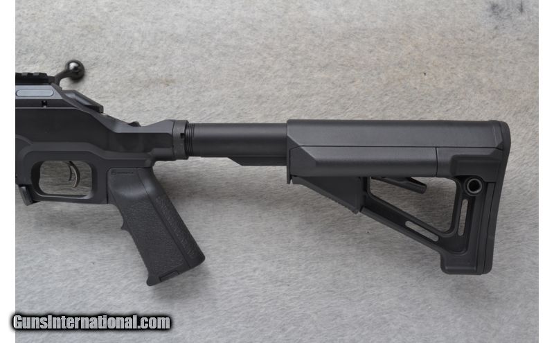 Description: This Ruger Model American is a right hand bolt action rifle in 6.5 Creedmoor Cal. It has a 22 inch barrel . A receiver top Picatinny rail. No iron sights. It comes with two stocks. The original green polymer and a MDT LSS vented alloy which is installed. It has an AR style full pistol grip and adjustable / telescoping butt. It comes with one 5 round and one 10 round magazine. SOLD Caliber Info: 6.5 Creedmoor Chambers: Bolt action 5 and 10 round magazines. Metal Condition: Excellent with a couple of minor handling marks. Wood Condition: Stock is excellent. Bore Condition: Excellent. Barrels: 22 inch matte black. Triggers: Ruger AccuTrigger. Stock: MDT LSS alloy stock. AR style grip and adjustable butt. Original green polymer stock is included. Stock Dimensions: LOP 13 3/8 inches. Fore End: Vented alloy grip. Butt Pad: Textured black rubber. Weight: 8 lbs 2 oz. with MDT LSS stock. Sights: Receiver top Picatinny rail. No iron sights. Extras: Comes in a Ruger carton with two magazines. Item Location: Richfield, WI |