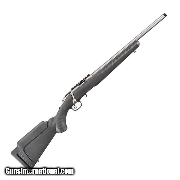 Description: The Ruger American Rimfire is a great choice for just about any kind of shooting you'd do with a rimfire rifle. No matter if it is small game hunting, pest control, target shooting or just plain old fashioned plinking, the Ruger American is up to the job. It has an all-weather composite stock with interchangeable modules to provide proper comb height for scope or iron sight use, and a nine-round detachable rotary magazine. The barrel is free floating for exceptional accuracy, and the Ruger Marksman adjustable trigger offers a crisp release and adjustable pull weight. Ruger American Bolt 17HMR 18'' Rifle Stainless Steel