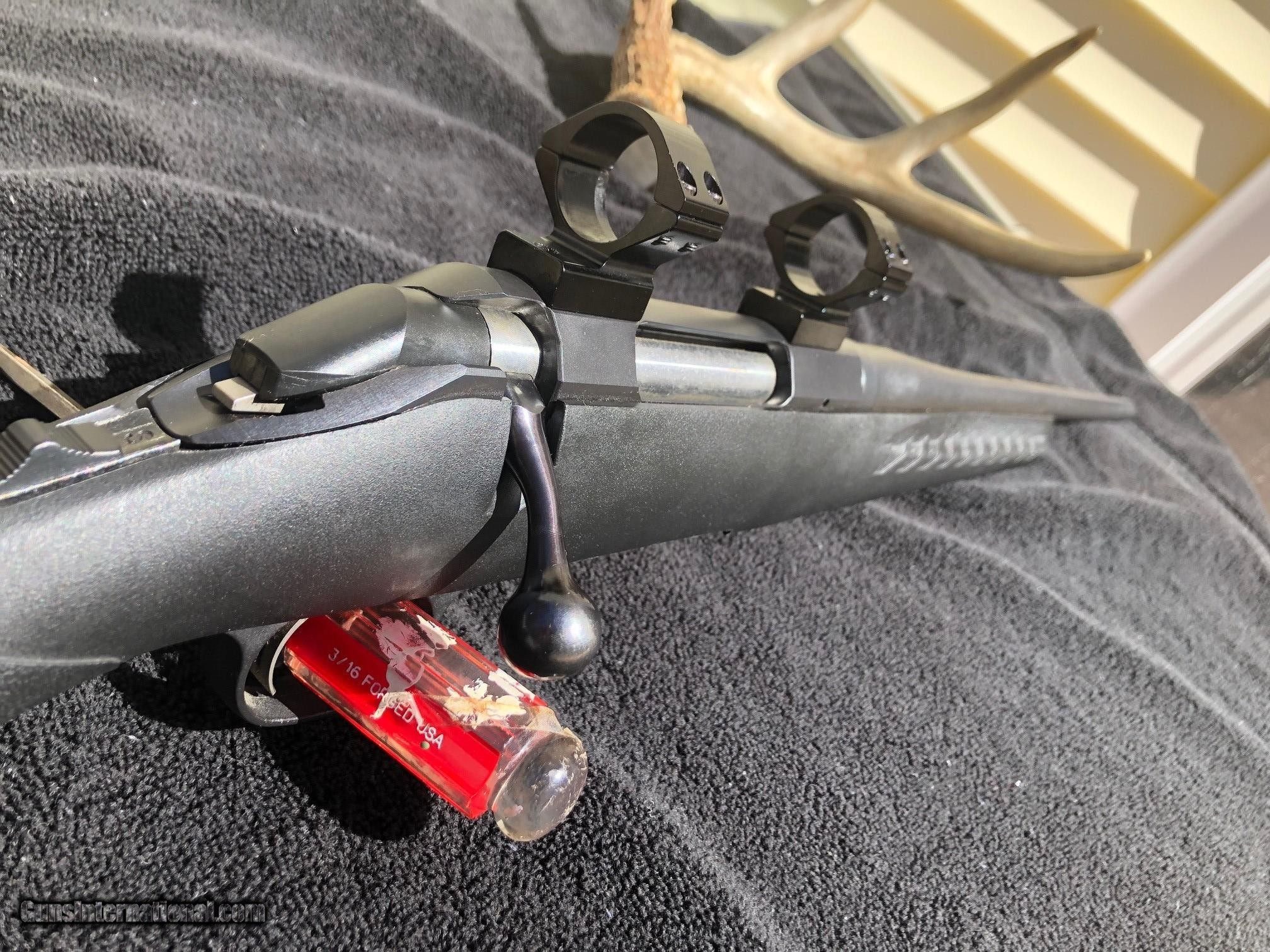 Description: I have for sale a very nice Ruger American Bolt Action Rifle in the great .308 caliber. This rifle is in very good original condition and comes with Leupold 1” Rings included. It has an 18” Barrel and weighs 5 Lbs. 12 Oz with the rings on and has a black synthetic stock. It is SUPER ACCURATE. At the 100-yard range I can consistently get 1” to 1 ½” groups with factory Remington Ammunition. I shot a Moose in Newfoundland with it at a verified range of 365 Yards. Reason for selling is that I have just too many rifles and have not used this on for a while. It carries very nicely and will not break the bank. Thanks for looking, Steve SOLD Manufacturer: RUGER Caliber Info: .308 Condition: Excellent Action: BOLT ACTION |