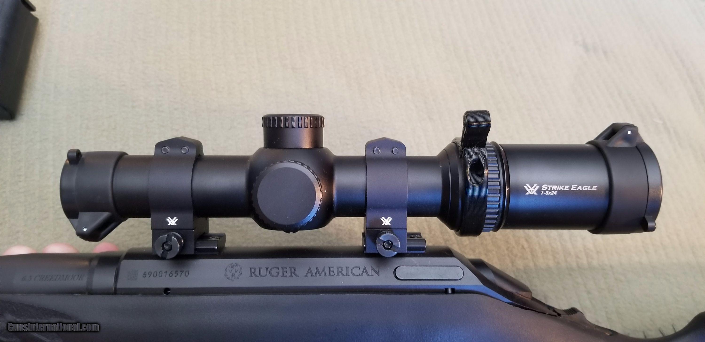 This is a Ruger American Compact rifle in 6.5 Creedmoor. I filled the stock compartment with expanding foam and epoxy bed the action. This lightweight stock is now VERY rigid AND still lightweight. The 6.5 Creedmoor is an extremely flat and boringly accurate round. I purchased this gun specifically for a Hoghunt in Alabama that just passed and it dropped two where they stood. The glass I chose was a Vortex Strike Eagle 1-8 power. It has a ONE moa dot in the center of a half moon style reticle and will also light up if needed. I mounted the scope with Vortex Extreme Duty medium rings. I chose a Surefire Pro Comp muzzlebrake to tame what little recoil this rifle has. I also installed a speed arm on the scope magnification ring to move quickly from 1x to 8x power or vice versa. I am also including another factory mag, sling, 100 rounds of S&B tactical ammo and hardcase. This gun has been shot less than 50 times and is in great condition. The trigger has been tuned and is about 2.75-3 pounds and very smooth. This gun is a tack driver and you won't be disappointed. This is a very lightweight, accurate and mild recoiling weapon perfect for a person sensitive to recoil or a young adult.