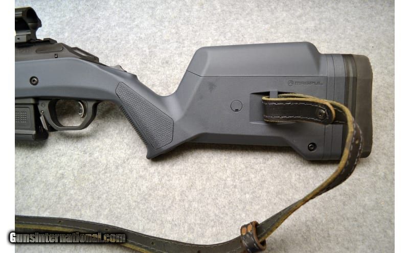 Description: Ruger American Hunter Bolt Action Rifle in 308 Winchester. The Magpul Hunter American short-action stock features fully adjustable length of pull and comb height and enhanced ergonomics. Ruger Marksman Adjustable trigger offers a crisp release with a pull weight that is user adjustable between 3 and 5 pounds. The one-piece, three-lug bolt with 70° throw provides ample scope clearance and utilizes a full diameter bolt body and dual cocking cams for smooth, easy cycling from the shoulder. Picatinny scope base with rings included. The visible, accessible and easy-to-actuate tang safety provides instant security for both right and left-handed shooters. Includes two magazines. .308 Winchester SOLD Barrels: 20 Weight: 10 lb Item Location: christiana |
