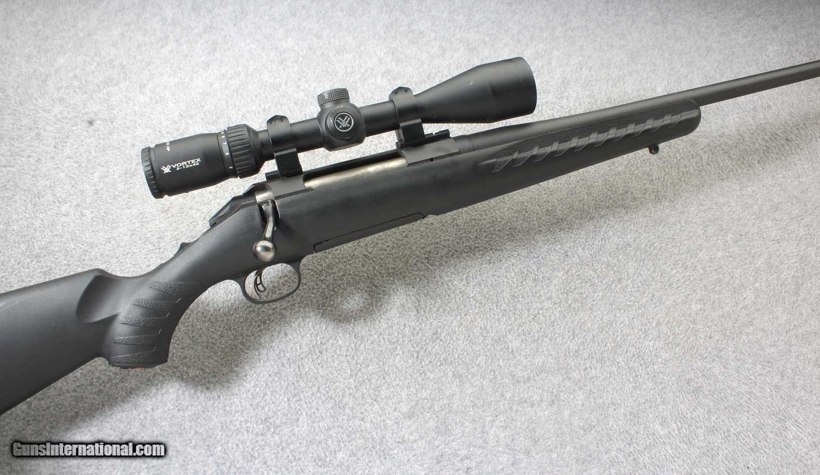 Description: The Ruger American Rifle® Standard is a bolt-action rifle built with innovative designs and modern materials to provide shooters with a practical and cost-effective firearm, meant for serious hunting. Ruger uses a 3-lug bolt design on the American Rifle with a 70° bolt lift, providing plenty of clearance to keep fingers and gloves from getting between the bolt handle and the riflescope. A 2-position tang safety is easily accessible and quick to operate by both right- and left-handed shooters; the bolt can be cycled for loading and unloading the rifle with the safety engaged. Ruger designed the Marksman Adjustable™ trigger for the American Rifle to be user adjustable for weight-of-pull. The Marksman trigger is light and crisp, allowing for precision shooting in the field. The stock features molded-in, Power Bedding® recoil/bedding blocks to rigidly attach the barreled action to the stock and free-float the barrel. A soft rubber recoil pad absorbs recoil considerably. The Ruger American Rifle is a lightweight, fast-handling, and superbly accurate rifle meant for rugged use in the outdoors. Made in USA 2018. .270 Winchester SOLD Metal Condition: Very good with some scratches Bore Condition: Excellent Barrels: 22 inch barrel Triggers: Ruger Marksman Adjustable trigger Stock Dimensions: 13 3/4 inch LOP Butt Pad: Rubber pad Weight: 7 Lbs. 14 Oz. Sights: Vortex Diamondback HP 3-12x42 scope Item Location: Lehi, UT |