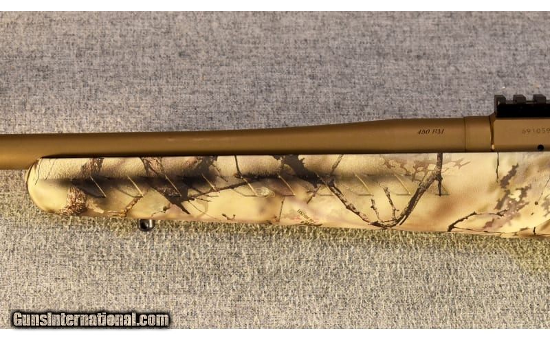 Description: This is a factory direct Ruger American Predator rifle in .450 Bushmaster .450 Bushmaster SOLD Metal Condition: Very good with a few small scratches and rub marks Wood Condition: Very good with light handling marks Bore Condition: Clean with bright lands Barrels: 22 Triggers: Ruger Marksman adjustable trigger Stock Dimensions: 14" LOP Fore End: Synthetic with GO Wild IM Brush Butt Pad: Ruger rubber pad Weight: 6 Lbs. 4 Oz. Sights: Picatinny rail installed Item Location: Glendale, AZ |