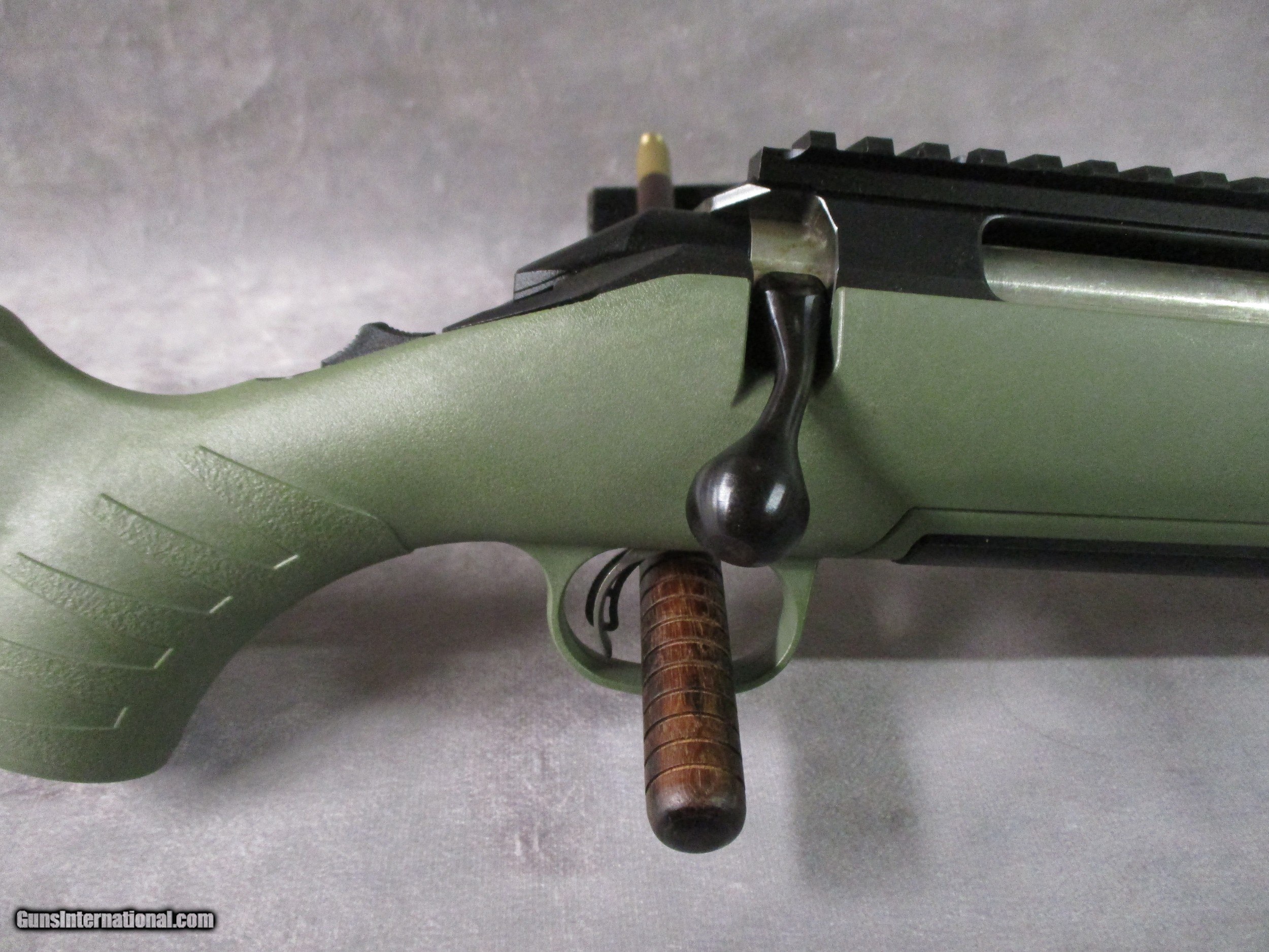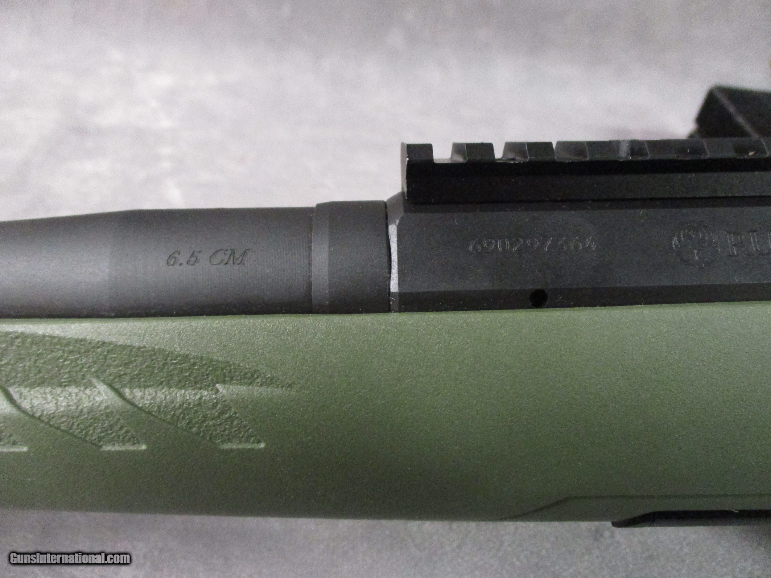 Description: The Ruger American is designed to be one of the most affordable rifles on the market, yet provides accuracy, ergonomics, and a level of reliability that rivals the more expensive rifles, such as the Remington 700. Shown here is a barely used Predator version. It has a 22-inch cold-hammer forged barrel with a threaded muzzle for attaching either a muzzle brake or a suppressor. The synthetic stock offers great resistance to the elements and features Ruger’s patented Power Bedding®, an integral bedding block system which free floats the barrel for improved accuracy. The one-piece bolt offers three lugs for increased shooter safety and a 70 deg throw providing ample clearance for almost any scope. The receiver is fitted at the factory with a one-piece picatinny rail for mounting said scope. To round out this nice package, the Predator comes with a detachable box magazine which has a capacity of 4 rounds. Chambered for the excellent 6.5 Creedmoor, the Predator is suited for use against a wide variety of game. As mentioned, the rifle is barely used. There are two spots on missing finish on the barrel on the left side. Given the bright silver appearance, it is possible that the two spots are a simple case of factory error. The bore is in superb shape with a minute amount of residue present. There is no box. If you are looking for a new hunting rifle, the Predator is a superb choice. SOLD Rifle Caliber: 6.5 Creedmoor Manufacturer: Sturm, Ruger & Co., Inc. Model: American Predator Serial Number: 690297364 Bore: Rifled, 5 grooves, 1:8-inch (1:203 mm) RH twist Condition: Excellent Barrel Type: Heavy Tapered, Threaded Action: Bolt Action Triggers: Ruger Marksman Adjustable Stock: Moss Green Synthetic with patented Power Bedding Fore End: Moss Green Synthetic Butt Pad: Rubber pad LOP: 13.75 inches (350 mm) Finish: Matte black Weight: 6.6 lbs. unloaded Sights: No sights Manufacture Date: 2019 |