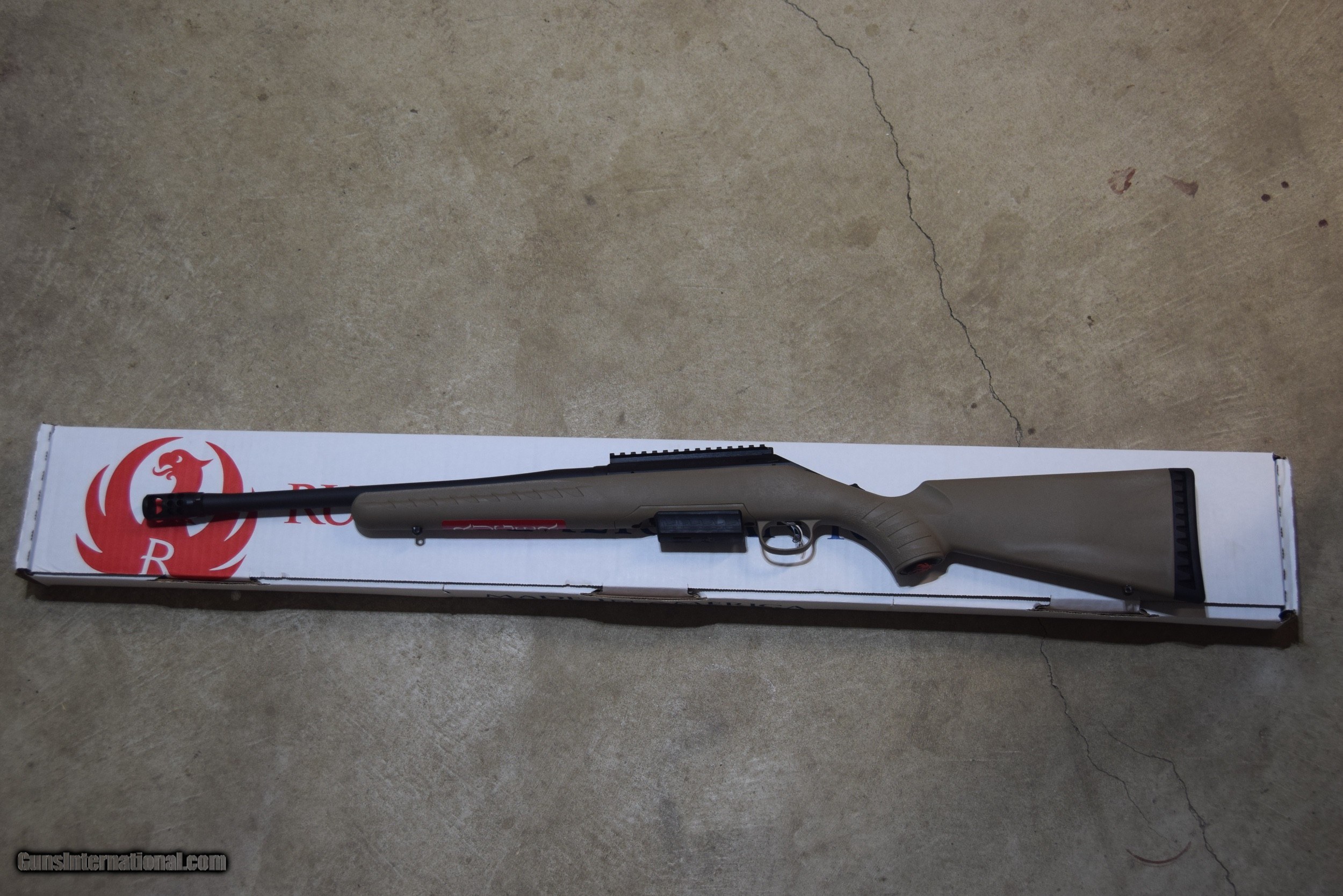 Description: Here's a new-in-box RUGER AMERICAN RANCH RIFLE WITH 16-1/2-INCH BARREL IN .450 BUSHMASTER, MAGAZINE-FED WITH MUZZLE-BRAKE. It's finished in "Coyote TAN" and is being offered for ONLY $$569.95 SHIPPED FREE with NO FEES for credit card use.... SOLD |