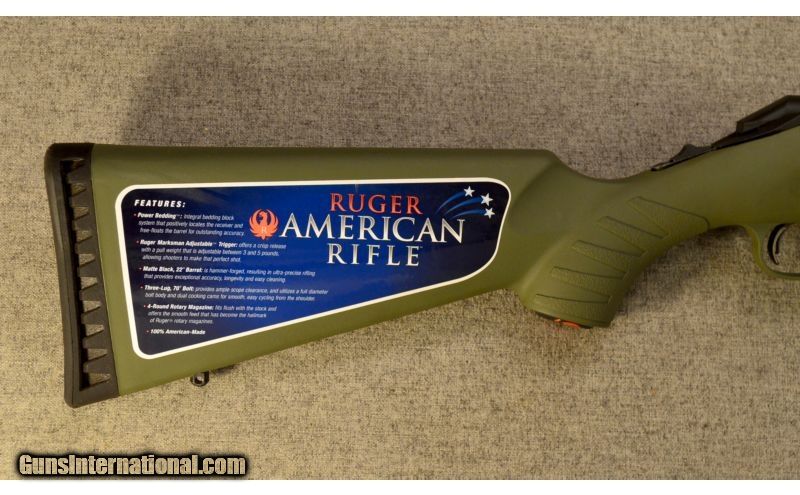 Description: This is a factory direct Ruger American Rifle Predator model in .223 Remington being sold as pre-owned SOLD Caliber Info: .223 Rem. Metal Condition: As new in box Wood Condition: As new in box Bore Condition: Clean with bright lands Barrels: 22.5 threaded Triggers: Marksman adjustable Stock: Moss green synthetic Stock Dimensions: 13.75" LOP Fore End: Green synthetic Butt Pad: Ruger rubber pad Weight: 6.6 Lbs. Sights: Scope rail installed Extras: Comes with the factory box, manual, lock and one magazine Item Location: Glendale, AZ |