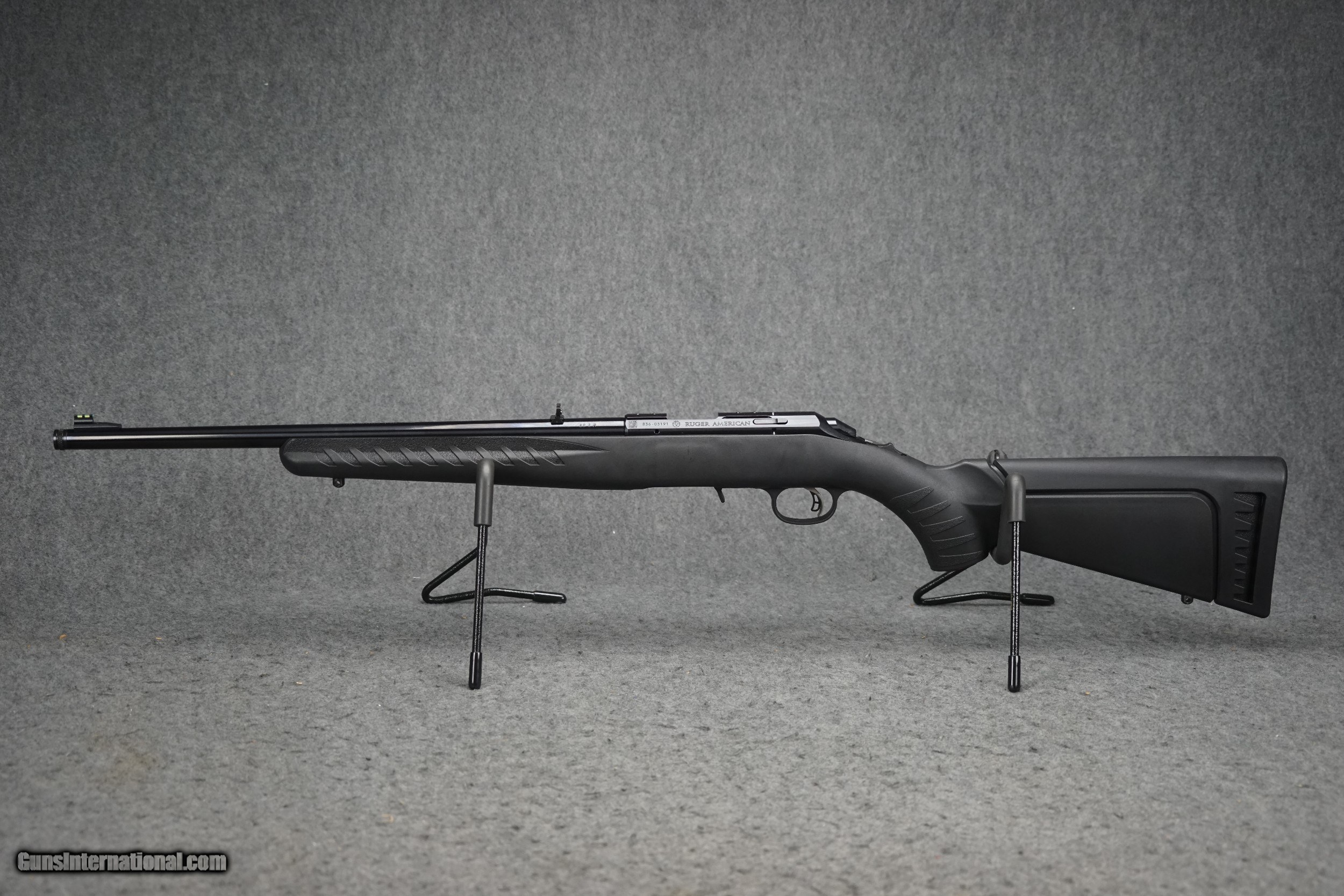 Description: Includes two interchangeable standard length of pull stock modules that provide comb height options for scope or iron sight use. By simply removing the rear sling swivel stud, stock modules can be changed in seconds. Compact stock modules are available at ShopRuger. Includes the patented, detachable, flush-mounted BX-1, 10-round rotary magazine and accepts all 10/22® magazines, including the BX-25®, BX-25®x2 and BX-15®. Ergonomic, lightweight synthetic stock (designed for quick, easy handling) blends a classic look with modern forend contouring and grip serrations. Easy-to-use, extended magazine release provides smooth, no-fuss removal of the flush-mounted magazine. Patented Power Bedding® integral bedding block system positively locates the receiver and free-floats the barrel for outstanding accuracy. Ruger Marksman Adjustable™ trigger offers a crisp release with a pull weight that is user adjustable between three and five pounds, allowing shooters to make that perfect shot. Features a visible, accessible and easy-to-actuate tang safety that provides instant security. Threaded barrel with factory-installed thread protector is cold hammer-forged, resulting in ultra-precise rifling that provides exceptional accuracy and longevity. A 3/8" rimfire scope base is machined into the receiver, which is also drilled and tapped for Weaver #12 bases. A 60° bolt throw provides ample scope clearance and the easy-to-use, receiver-mounted bolt release allows the bolt to be readily removed without requiring a pull of the trigger, a unique safety feature among rimfire, bolt-action rifles. Stock Black Synthetic Capacity 10 Overall Length 37" Barrel Length 18" Front Sight Williams™ Fiber Optic Rear Sight Adjustable Thread Pattern 1/2"-28 Length of Pull 13.75" Weight 5.5 lb. Material Alloy Steel Finish Satin Blued Twist 1:16" RH Grooves 6 SOLD Rifle Caliber: .22 Long Rifle Manufacturer: Ruger Model: American Rimfire Barrel Length: 18 Condition: BRAND NEW |
