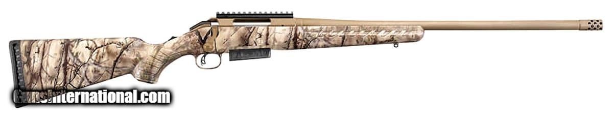 Description: Guns Listing ID: 285243 Rugers American Rifle offers minuteofangle accuracy that can make every hunt a success. The onepiece threelug bolt with 70 degree throw provides ample scope clearance and utilizes a full diameter bolt body and dual cocking cams for smooth easy cycling. Its patentpending Power Bedding integral bedding block system positively locates the receiver and freefloats the barrel for outstanding accuracy. The ergonomic lightweight synthetic stock with soft rubber buttpad is designed for quick easy handling and blends a classic look with modern forend contouring and grip serrations. The American Rifle also has a Ruger Marksman adjustable trigger cold hammerforged barrel and a tang safety. SOLD Manufacturer: RUGER Model: AMERICAN Caliber Info: 6.5 PRC Condition: new Barrels: 2.4 BARREL Finish: CAMO |