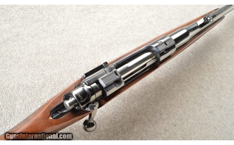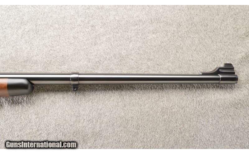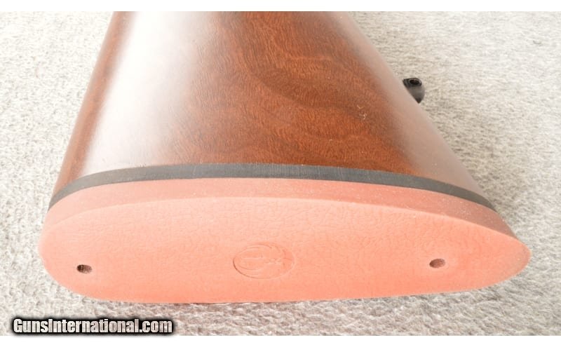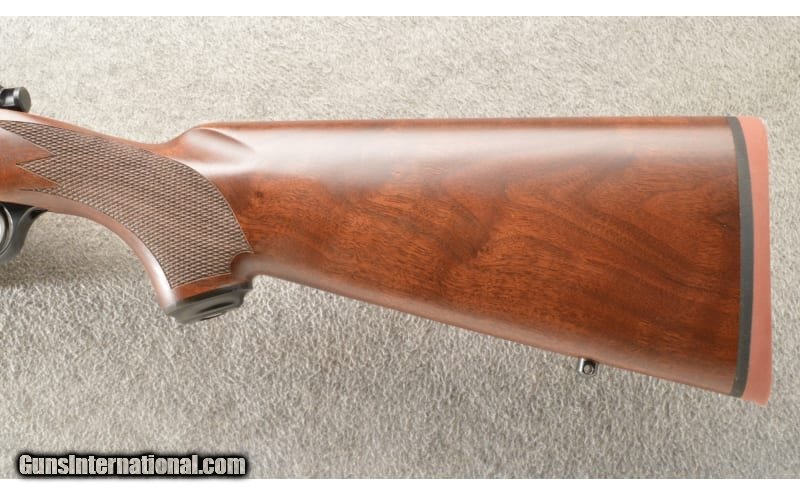 Description: Lipsey's Exclusive Ruger M77 Hawkeye African chambered in 35 Whelen. This Ruger has a 24" barrel with a gold bead front blade sight and a white diamond adjustable folding rear leaf. The stock is a one piece checkered walnut with a metal capped pistol grip and an ebony tipped forend. There are sling studs on the belly of the stock and also on a barrel band. The steel floorplate is hinged and engraved with the Ruger Phoenix logo and name. The bolt is a non-rotating, Mauser-type controlled round feed extractor with a fixed blade-type ejector. This gun comes new in the factory box with the owners manual, paperwork, cable lock and Ruger factory rings. .35 Whelen SOLD Chambers: Bolt action. Metal Condition: New. Wood Condition: New. Bore Condition: New. Barrels: 24" barrel. Triggers: Single. Stock Dimensions: LOP 13.5". Fore End: Checkered. Butt Pad: Rubber. Sights: Adjustable. Item Location: Owatonna, MN |
