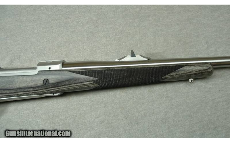 Description: Ruger M77 Hawkeye Alaskan Bush bolt action rifle in 9.3x66mm. The receiver, barrel, scope rings, and trigger group are all brushed stainless. The stainless-steel floorplate is engraved with the Ruger logo. The barrel is 20 inches with a white bead front blade and an express rear sight. The stock is grey laminated hardwood with checkered forend and grip with a rubber Ruger recoil pad. This rifle has a 3-position safety, a crisp trigger, and is fitted with a Mauser-style bolt action system and claw extractor. This rifle comes with integral scope bases. The 9.3×62mm is a rimless, bottlenecked rifle cartridge designed in 1905. The 9.3×62mm is considered ideal for hunting the larger and tougher African game species and is a popular cartridge for hunting game like moose and wild boar. This rifle is factory new in box. 9.3X62mm Metal Condition: As new in box Wood Condition: As new in box Bore Condition: Bright Barrels: 20 Inches Triggers: Factory Stock Dimensions: LOP 13 1/2 Inches Fore End: Checkered Laminated hardwood Butt Pad: Rubber pad Weight: 7 lbs 10 oz Sights: "Express sights, milled for scope rings Item Location: La Vista, NE Price: $1,599.99 Contact Seller |