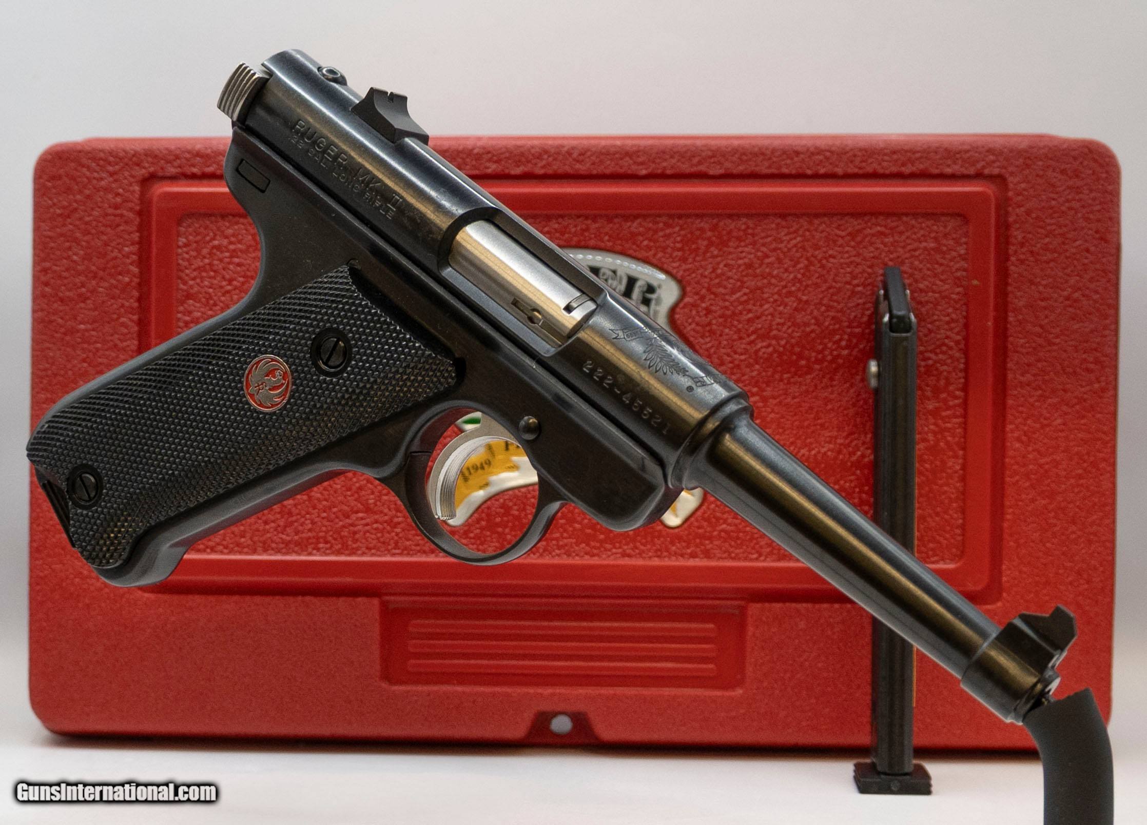 Ruger MK II is chambered in .22 Long Rifle and in good condition. Firearm has no wear on the slide or grip, also comes with case and extra magazine. SKU: 4424247 .22 Long Rifle