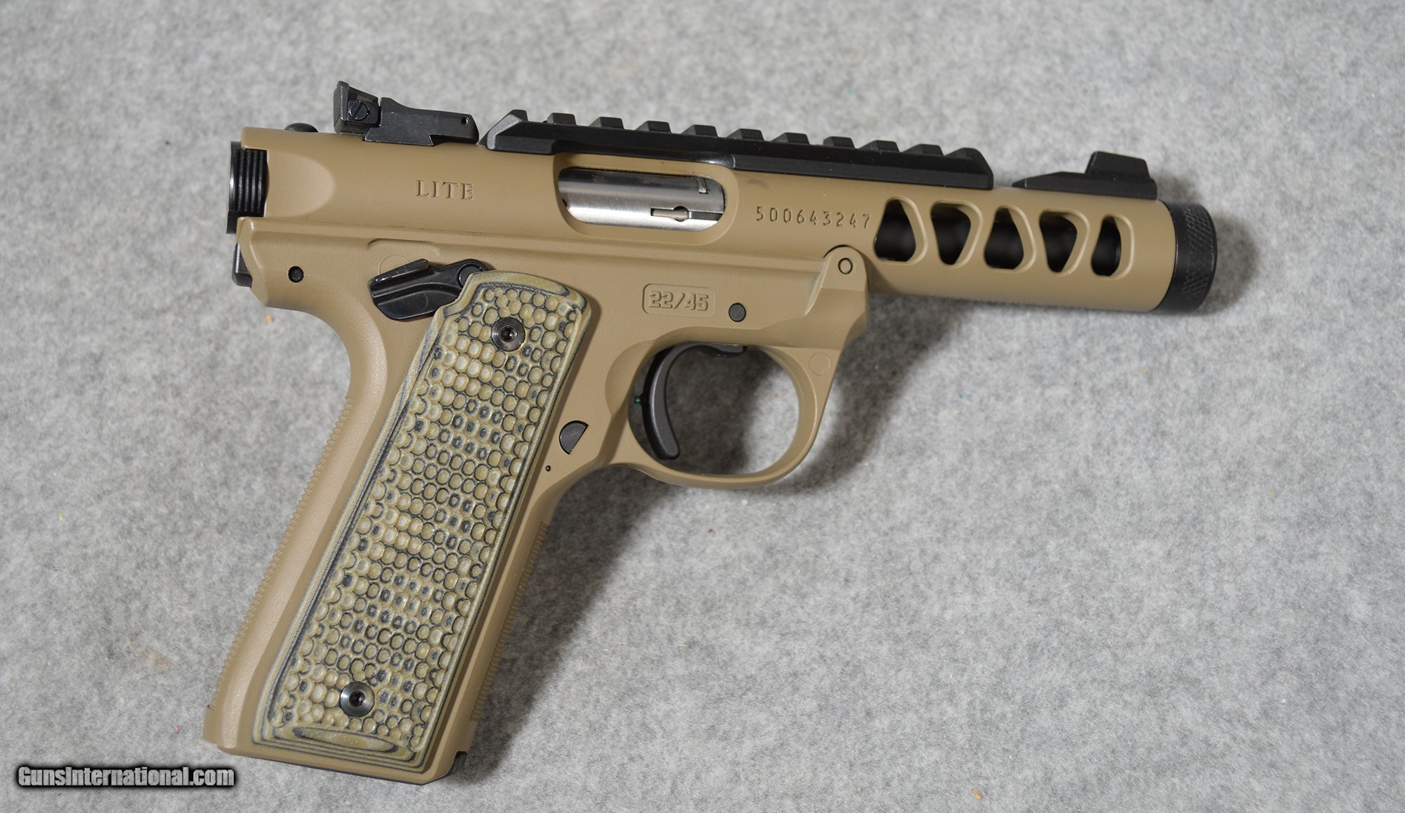Description: This Ruger MK IV Lite is in excellent condition, and comes with many features that include... Simple, one-button takedown for quick and easy field-stripping and proper chamber-to-muzzle cleaning. Pressing a button in the back of the frame allows the barrel-receiver assembly to tilt up and off the grip frame without the use of tools. Comfortable, precision-molded polymer grip frame with a serrated frontstrap and checkered backstrap. Features a lightweight, ventilated, aerospace-grade aluminum receiver and a tensioned stainless steel barrel. 1/2"-28 threaded barrel with thread protector allows for the attachment of popular muzzle accessories. Cold hammer-forged barrel results in ultra-precise rifling that provides exceptional accuracy and longevity. Ergonomic bolt stop. Internal cylindrical bolt construction ensures permanent sight-to-barrel alignment and higher accuracy potential than conventional moving-slide designs. .22 Long Rifle Chambers: 22 Long Rifle Metal Condition: Excellent Bore Condition: Bright and shiny Barrels: 4" barrel Triggers: Crisp Weight: 1.5lbs Sights: Iron sights Item Location: Independence, MO Price: $499.99 Contact Seller |