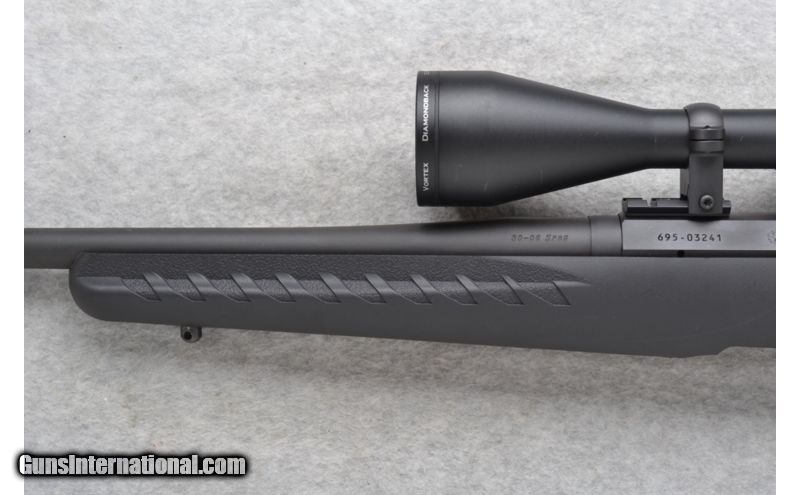 Description: SOLD Caliber Info: .30-06 Sprg. Chambers: Detachable Magazine. Metal Condition: Excellent. A couple minor handling marks. Bore Condition: Excellent. Barrels: 22 inch matte black. Stock: Textured grip black polymer pistol grip. Stock Dimensions: LOP 13 3/4 inches. Fore End: Textured grip black polymer. Butt Pad: Soft black rubber recoil pad. Weight: 7 lbs. 8 oz. with scope mounted. Sights: Vortex Diamondback 3.5-10x50 Scope. No iron sights. Item Location: Richfield, WI |