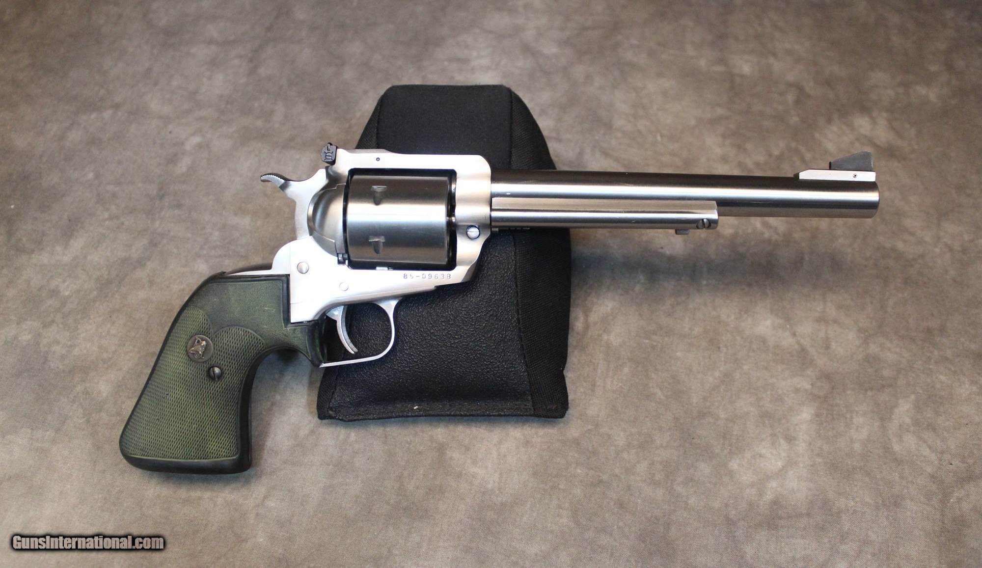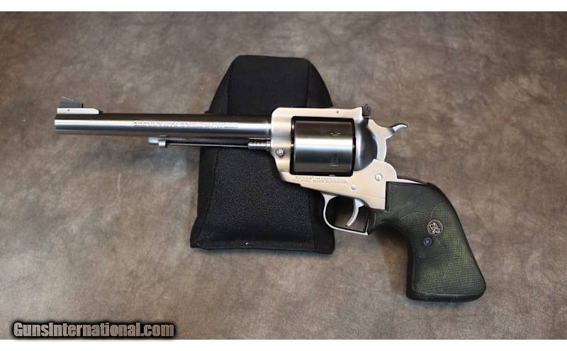 Description: This Ruger New Model Super Blackhawk is in very good condition and is in stainless steel. There is a couple of very minor surface scratches on the side of the frame. Ruger Blackhawk revolvers are known for their accuracy and durability. It would make an excellent hunting handgun. .44 Remington Magnum Chambers: .44 Remington Magnum Metal Condition: Very good Bore Condition: Very good Barrels: 7.5 Triggers: SA Butt Pad: Pachmayr Presentation grips Weight: 48 OZ Sights: "White outline rear adjustable for elevation and windage, serrated ramp front Item Location: Columbia, MO Price: $549.99 Contact Seller |