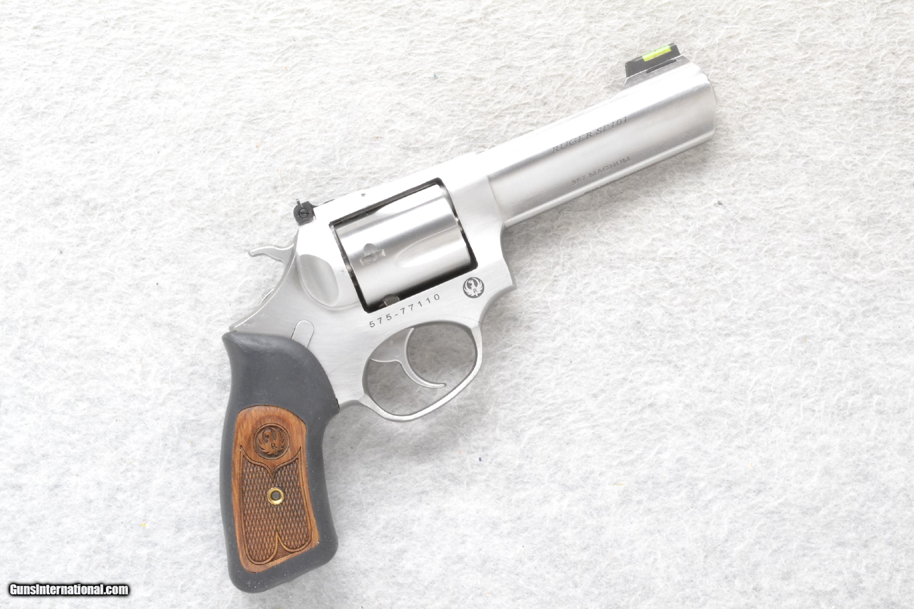 Description: This Ruger SP101 is a right-hand double action revolver pistol in .357 Magnum Cal. The barrel is 4 inches long. It has a fixed green blade fiber optic front sight, and an adjustable notch rear sight. The pistol grip is smooth rubber with checked hardwood side panels. It includes a hard case. .357 Magnum Chambers: 5 rounds Wood Condition: Excellent with mild handling marks Bore Condition: Very good Barrels: 4 Weight: 2 lbs Sights: "Green bar fiber optic front, adjustable notch rear Item Location: Richfield, WI Price: $599.99 Contact Seller |