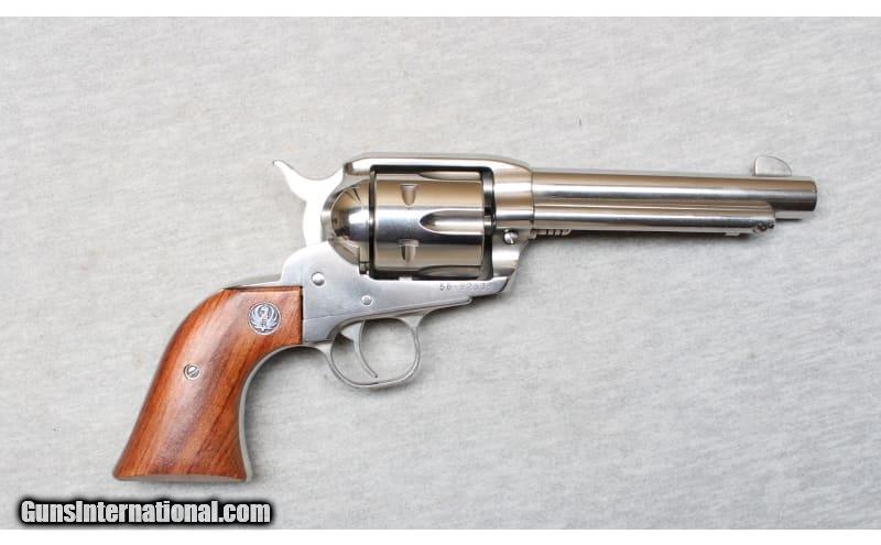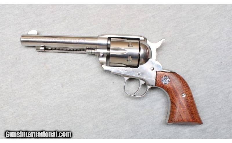 Description: Ruger Vaquero in .357 Remington Magnum. This 6-shot single action revolver has a 5 1/2-inch barrel. The frame, barrel, fluted cylinder and back strap are finished in high-gloss stainless steel. The grips are walnut with a Ruger logo. Bore is bright. The revolver has fixed sights. It also has a transfer bar safety. .357 Magnum SOLD Metal Condition: Excellent Wood Condition: Excellent Bore Condition: Bright Barrels: 5 1/2 inches Triggers: Factory Sights: Fixed Item Location: La Vista, NE |