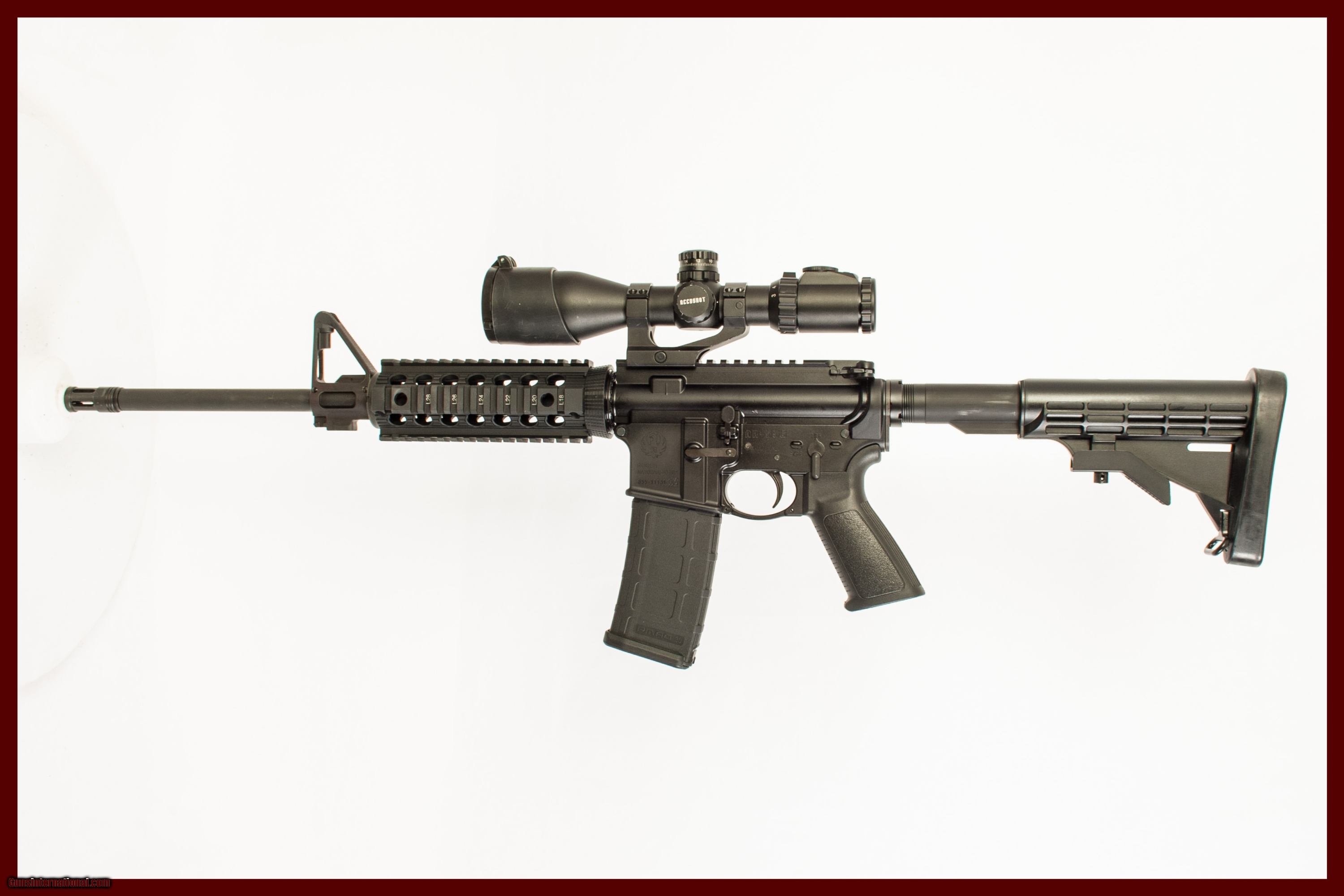 RUGER AR-556 CHAMBERED IN 5.56MM WITH A 16.5 INCH BARREL AND 1 INCH BRAKE COMES WITH ATTACHED ACCUSHOT 3-9X50MM SCOPE. THIS GUN IS IN GOOD CONDITION AND IS COVERED BY DURY'S LIFETIME WARRANTY.