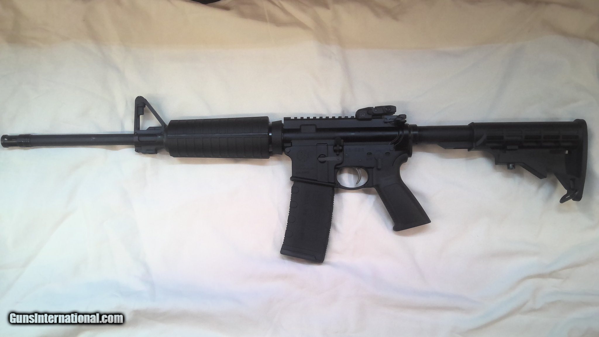 Description: Guns Listing ID: 586134 Ruger® Rapid Deploy folding rear sight provides windage adjustability and pairs with the A2-style, F-height, elevation-adjustable front sight for a solid, reliable aiming system. Made from 7075-T6 hard-coat anodized aluminum forgings, shot-peened and proof-tested 9310 steel bolt, and 8620 steel bolt carrier. The inside diameter of the carrier and gas key are chrome plated and the key is staked for longevity. Barrel nut and delta ring allow easy, one-person service of the heat-resistant glass-filled nylon handguard. The design accepts most standard carbine-length handguards. The barrel nut uses a standard wrench. Gas block is located at a carbine-length (M4) position for improved balance and handling. Multiple attachment points include a QD socket and bayonet lug, for many sling and accessory mounting options. Serrations on the angled face of the gas block provide a low-glare surface. Handguards are made from heat-resistant glass-filled nylon for shooting comfort and durability. Single-stage trigger provides durable and reliable fire control. The enlarged trigger guard is designed to allow gloved shooting in cold weather. Six-position, telescoping, M4-style buttstock and Mil-Spec buffer tube allow the rifle to be properly sized for different shooters or varying levels of outerwear. Equipped with a medium contour, cold hammer-forged alloy barrel with 1:8\" twist rifling that provides exceptional accuracy with bullets from 35 to 77 grains. M4 feed ramps and 5.56 NATO chamber allows the use of both 5.56 NATO and .223 Rem. ammunition. The barrel and 1/2\"-28 Ruger® flash suppressor have a matte black oxide finish to reduce glare and provide corrosion resistance. Front sight post is elevation adjustable, and a front sight tool is included. The A2-style, F-height front sight allows co-witness with many optics. Ergonomic pistol grip features an extended trigger reach for more precise trigger control. Made from aerospace-grade 7075-T6 aluminum forging, the flat top upper receiver features a forward assist, dust cover and brass deflector. SOLD Manufacturer: RUGER Model: AR-556 Caliber Info: 5.56X45MM NATO Condition: Used - Non-Certified Barrels: 16.1" BARREL Finish: BLACK Weight: 6.7 LBS.  |