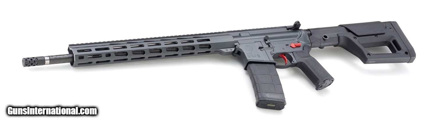 Description: Guns Listing ID: 699408 Features an 18\" PROOF Research carbon fiber wrapped barrel that is both attractive and significantly lighter than standard barrels, while still offering excellent accuracy and repeatability. Features a rifle-length gas system paired with chambering in .223 Wylde, a well-established chamber geometry that safely, accurately, and reliably functions with both 5.56 NATO and .223 Remington ammunition. Lower receiver is fitted with Magpul PRS Lite stock that balances the rifle and has secure length of pull and comb height adjustments for the best fit. Magpul MOE-K2 grip provides ergonomic access to trigger and safety controls. Handguard is free-floated for accuracy and the slim, 15\" length provides enhanced ergonomics. Bolt is mil-spec 9310 and is machined, shot peened and proof tested for strength and durability. The Ruger Elite 452 AR-Trigger is a two-stage trigger that offers a smooth, crisp, 4.5 pound trigger pull. It features a full-strength hammer spring for consistent primer ignition and a lightweight hammer that enables a faster lock time for improved accuracy. Magpul M-LOK accessory attachment slots along the 3:00, 6:00 and 9:00 positions with additional slots on the angled faces near the muzzle. Ruger muzzle brake is a radial port design that significantly reduces felt recoil and muzzle movement. The threaded barrel allows for standard muzzle accessories to be installed. Made from aerospace-grade 7075-T6 aluminum forging, the flat top upper receiver includes a forward assist, dust cover and brass deflector. Bolt carrier and gas key have chrome-plated inside diameters to provide exceptional resistance to hot gases. The gas key is staked so that it will not loosen after extensive firing. Also includes: one, 30-round Magpul PMAG magazine. SOLD Manufacturer: RUGER Model: AR-556 MPR Caliber Info: .223 WYLDE Condition: new Barrels: 1.8 BARREL Finish: GRAY CERAKOTE |