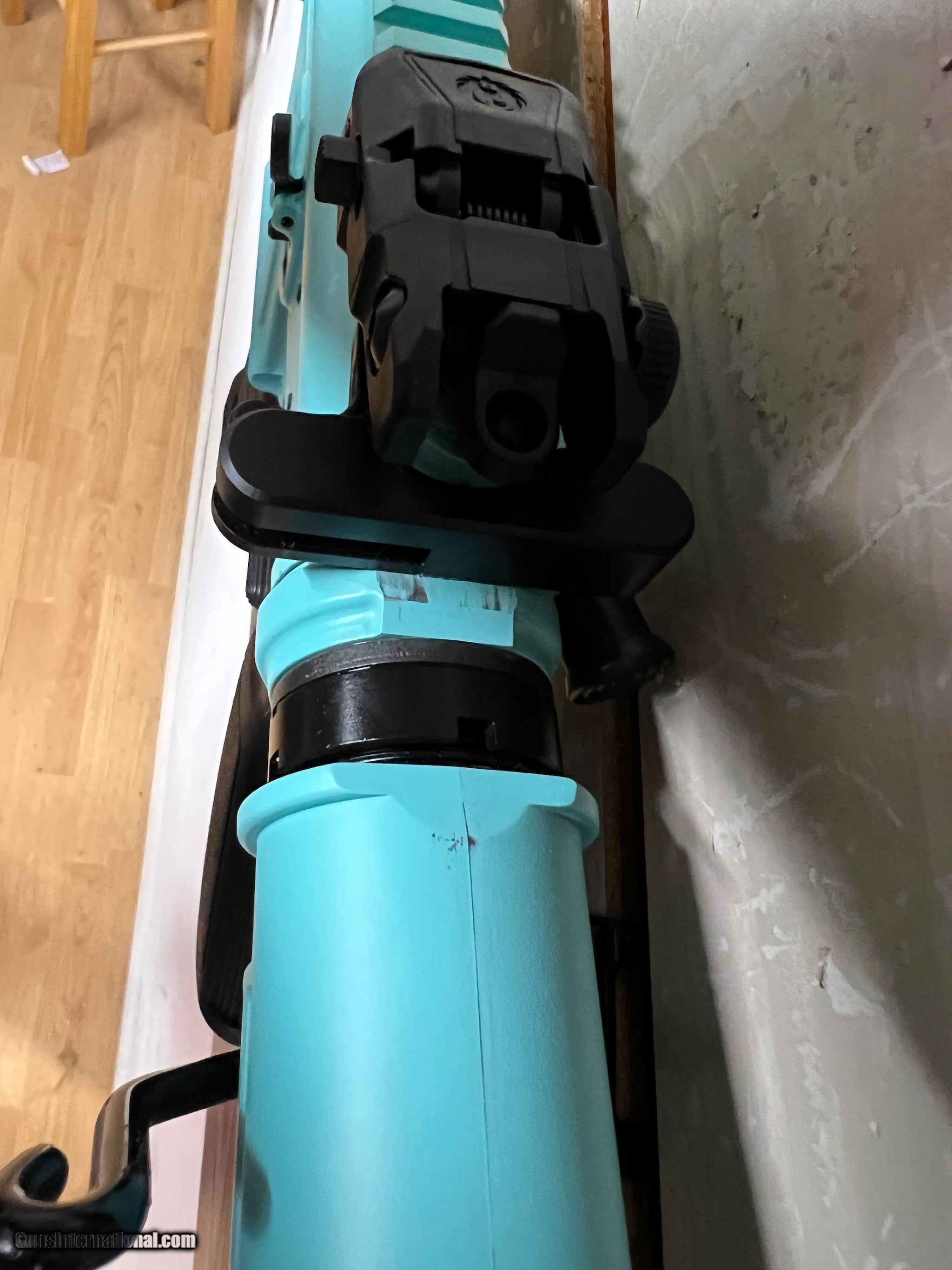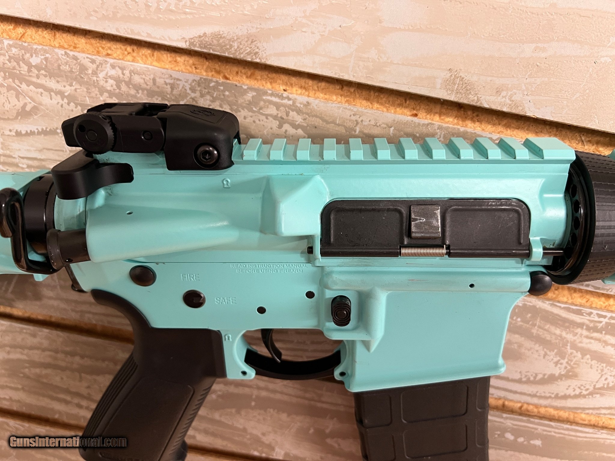 Description: Guns Listing ID: 554403 USED Talo Edition in Excellent Condition See photos for Typical AR wear No box will come wrapped up for shipping from the manufacturer More Information Model Specific: AR-556 Chamber Length: 0 in. Frame Finish: Turquoise Front Sight: Adjustable Post Rear Sight: Ruger Rapid Deploy Folding Firearm Stock: 6-Pos Synthetic Telescoping Features: Cerakote ComponentsRound Lightweight HandguardForward Assist Extended Length: 35.500 Finish: Blue Magazine Count: 1.000 Gas System Length: Carbine Frame Material: 7075 T6 Aluminum Barrel Configuration: Single Barrel Twist: 1-8 Rifled Barrel: Yes Minimum Pull Length: 0 in. PRODUCT DESCRIPTION A semi-automatic, M4-Style, direct impingement Modern Sporting Rifle, the AR-556® offers consumers an affordable, American-made rifle with the rugged reliability they have come to expect from Ruger. Extensively tested during its development, the AR-556® is constructed from top-quality components, including forged 7075-T6 aluminum upper and lower receivers and a cold hammer-forged, chrome-moly steel barrel with M4 feed ramp cuts. Chambered in 5.56 NATO with standardized M4/AR components utilized throughout, the AR-556® is easily customizable. SOLD Manufacturer: RUGER Model: AR-556 Caliber Info: 5.56X45MM NATO Condition: Used - Non-Certified Barrels: 16 BARREL Finish: TIFFANY BLUE |