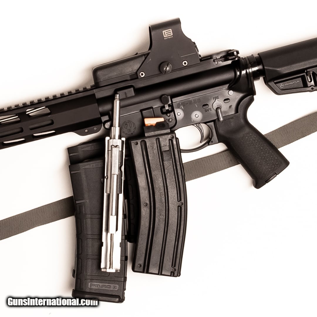 Description: Guns Listing ID: 563015 This Ruger AR-556 is an American-made AR-15 that‚‚s dependable, accurate, easy to use, and built to last. It features classic M4 furniture and a corrosion-resistant finish. If you‚‚re looking to get a rock-solid AR-15 for sport shooting, property defense, or general use, this is a great option widely trusted by civilians and law enforcement personnel. This AR-556 sports a Magpul MLOK QD sling attachment point, War Horse Concepts two-point quick-adjust sling, and a Kineti-Tech muzzle break. Purchase includes the owner‚‚s manual, three 30-round Pmags, and an EoTech 512 with the original hard case. As an added bonus, this AR-556 also comes with a CMMG .22 caliber conversion kit and one 25-round .22 magazine. SOLD Manufacturer: RUGER Model: AR-556 Caliber Info: 5.56X45MM NATO Condition: Used - Certified Barrels: 18 BARREL Finish: BLACK |