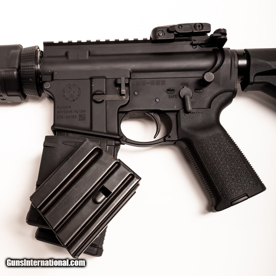 Description: Guns Listing ID: 554072 This Ruger AR-556 is an American-made AR-15 that‚‚s dependable, accurate, easy to use, and built to last. It features classic M4 furniture and a corrosion-resistant finish. If you‚‚re looking to get a rock-solid AR-15 for sport shooting, property defense, or general use, this is a great option widely trusted by civilians and law enforcement personnel. This AR-556 carbine has a Magpul adjustable stock, pistol grip, 7\" M-Lok handguard, 1/8 twist, muzzle device, A2-style front sight, and a flip-up Ruger rear sight. It is also equipped with a Calfornia-compliant mag release button. Purchase includes a Tactical Bulldog case, one 30-round magazine, and two 10-round magazines (one Pmag and one C Products Defense). There are scratches on the ejection port and around the bolt hold/mag release, which was cut for California compliance. SOLD Manufacturer: RUGER Model: AR-556 Caliber Info: 5.56X45MM NATO Condition: Used - Certified Barrels: 16 BARREL Finish: BLACK |