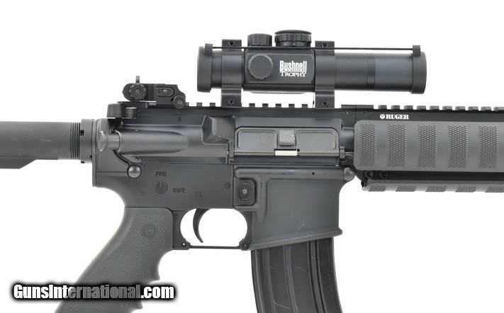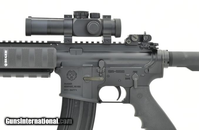 Description: Ruger SR-556 5.56mm caliber rifle. With 16” barrel, Troy flip-up sights, Bushnell red dot and grip pod in very good condition.