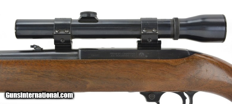 Ruger Carbine .44 Magnum caliber rifle. Semi-auto .44 magnum carbine with scope. Shows some wear. Otherwise very good condition.