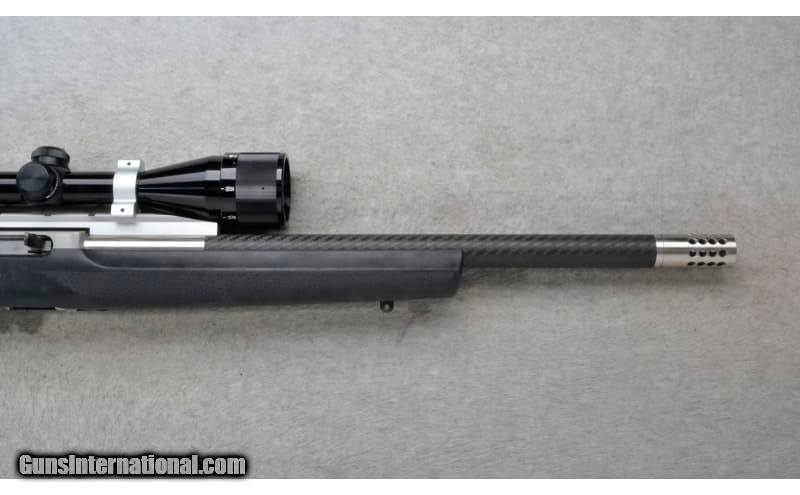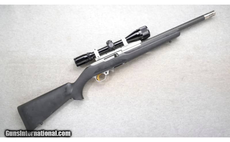 Description: This Ruger Model 10/22 Carbine is a right hand semi-auto rifle in .22 Long Rifle Cal. It has a 16.5 inch carbon fiber wrap Volquartsen barrel plus a muzzle device. It is outfitted with a Bushnell Sportview Scope. The trigger and magazine release is Volquartsen. The black rubber overmold stock is Hogue. .22 Long Rifle SOLD Chambers: 10 round magazine. Metal Condition: Excellent. Bore Condition: Excellent. Barrels: 16.5 inch Volquartsen carbon fiber wrap barrel plus a muzzle device. Triggers: Volquartsen Stock Dimensions: LOP 13 3/4 inches. Fore End: Hogue textured grip black rubber overmold with finger grooves. Butt Pad: Hogue black rubber recoil pad. Weight: 6 lb. 0 oz. Sights: Bushnell Sportview 4-12 Scope. Item Location: Richfield, WI |