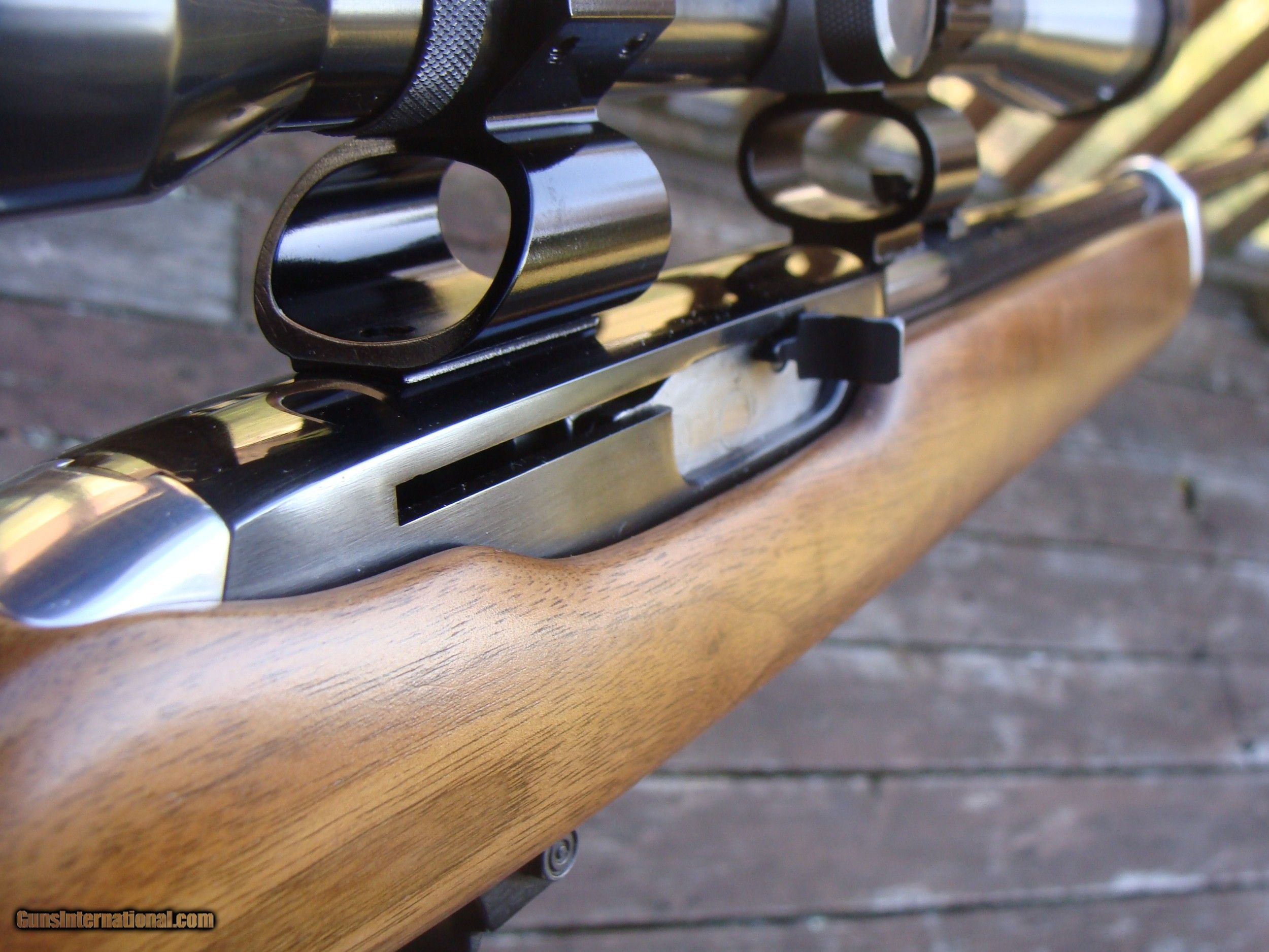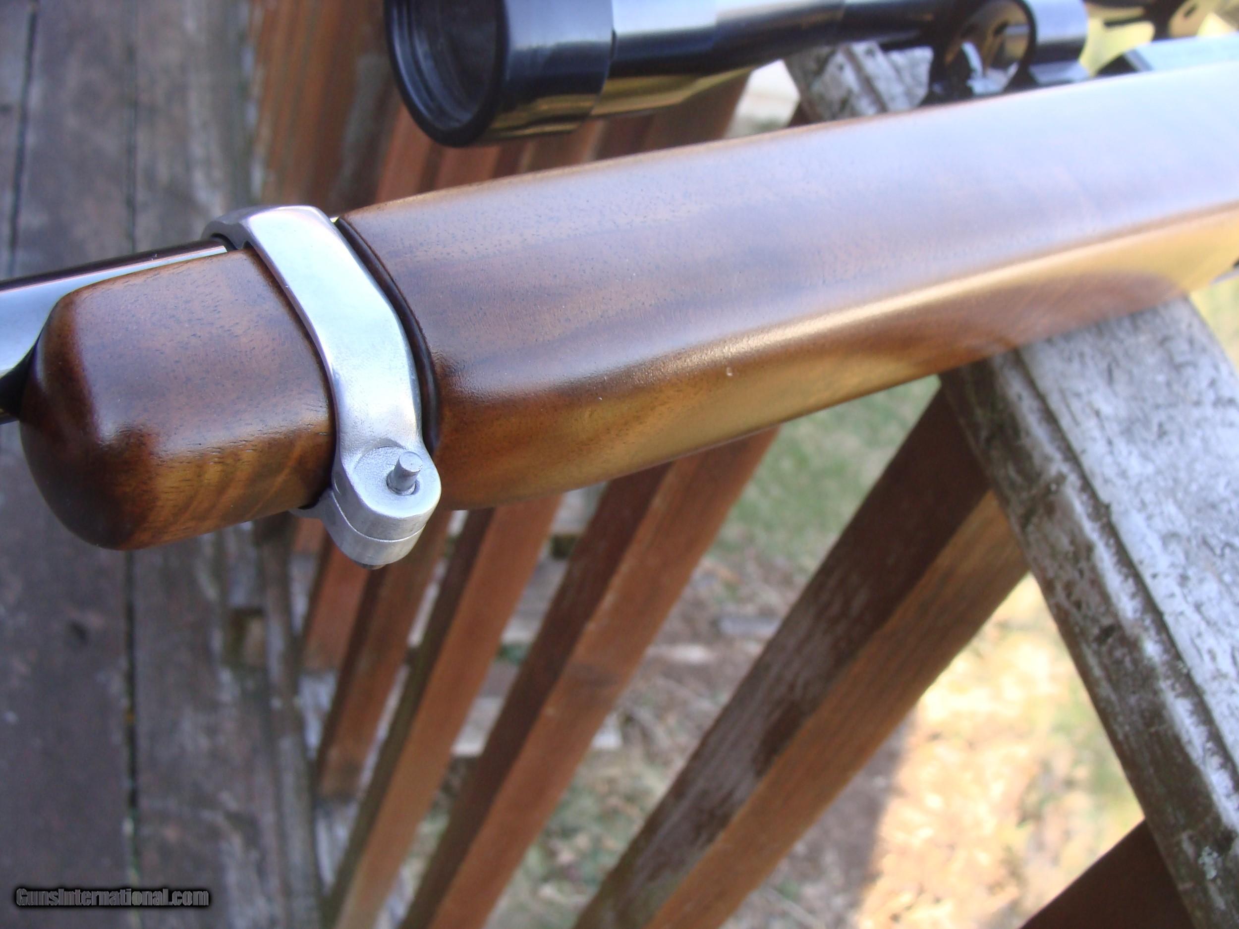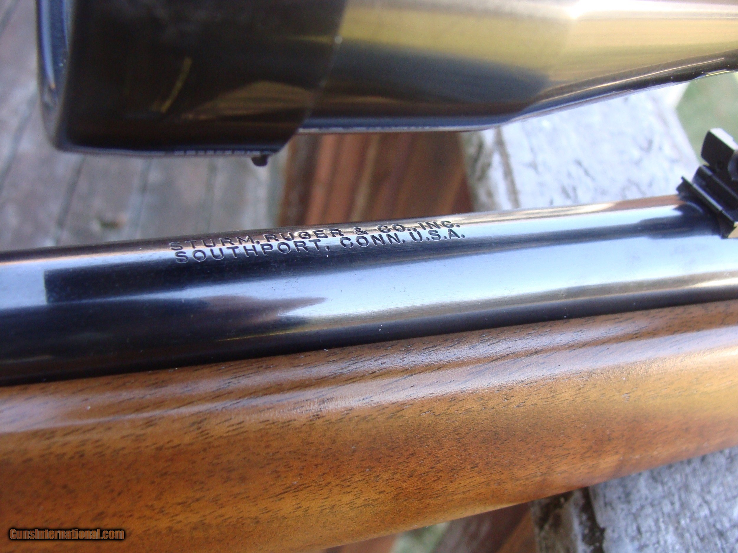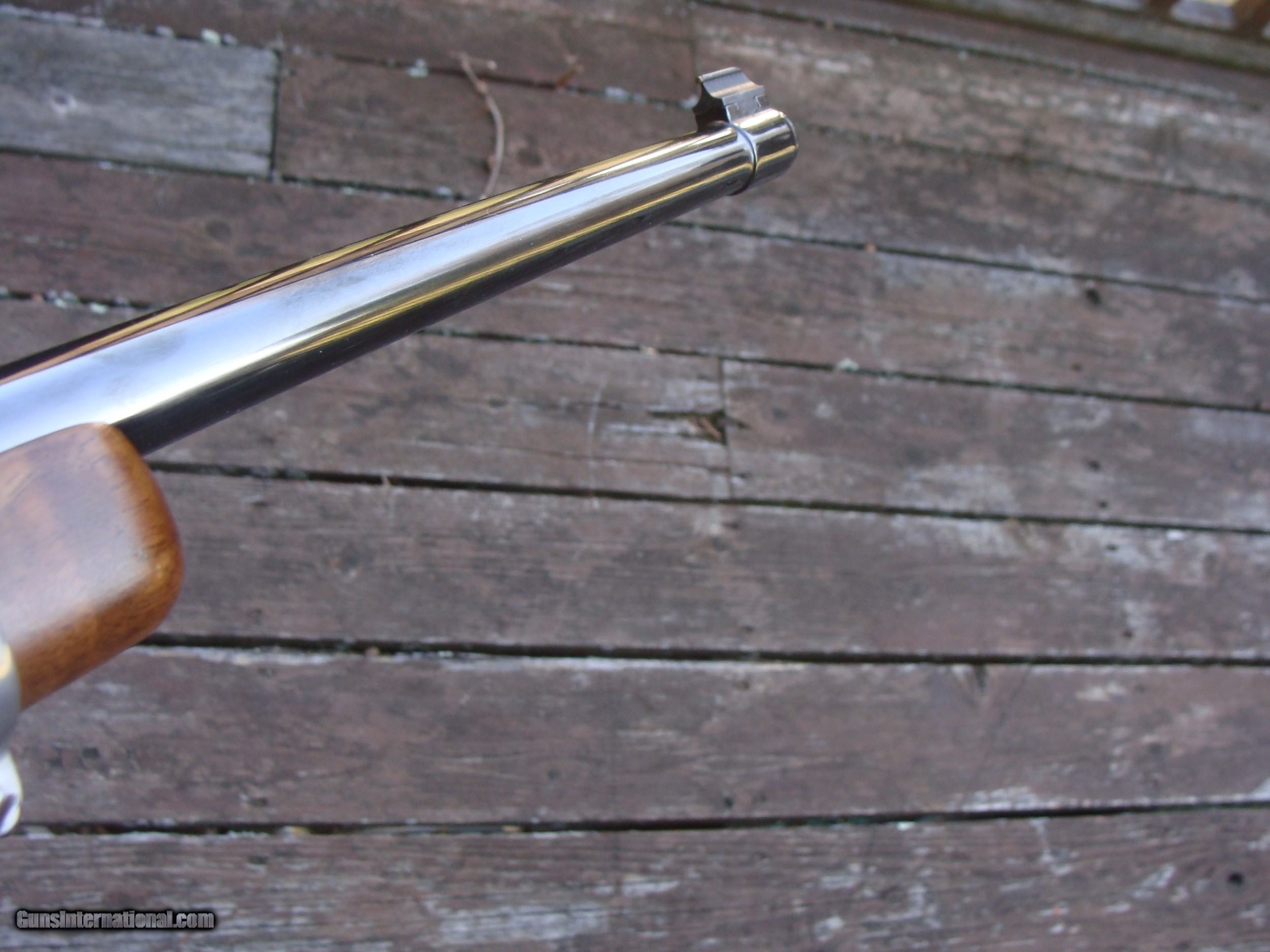 Description: This beauty has been mildly customized: forwerd barrel band rear receiver piece and butt plate polished to bright (could easily be made black again by spray paint or cerakote in a spray can) Stock very nicely refinished and reblued to a much nicer polish than original Ruger Finish on blue. Cond is very nice. lightly used and well cared for. These typically are quite accurate out to their effective hunting range of about 75 yards. Sought after by collectors, hunters and shooters and ideal for young or smaller and new hunters in that it is very light, fast and short (overall lenght is only about 37") SCOPE SHOWN IS NOT INCLUDED AND IS REALLY TOO BIG FOR THIS RIFLE; IT IS A CRYSTAL CLEAR VINTAGE STEEL TUBE TEXAS MADE WEAVER AND MAY BE INCLUDED FOR AN ADDITIONAL 45.00. WE DO HAVE MANY OLDER USED SCOPES THAT WOULD BE A BETTER SIZE FIT FOR THIS FINE GUN...INQUIRE IF INTERSTED. WE HAVE WELL OVER 1500 SALES ON ALL SITES WITH AN A+ RATING ON ALL (WE ALSO KEEP AN INVENTORY OF OLDER PERIOD CORRECT SCOPES; CALL WITH NEEDS) WE ARE HAPPY TO TAKE CONSIGNMENT GUNS AND COLLECTIONS OR WILL BUY YOURS OUTRIGHT. WE SOMETIMES ARE EMPLOYED FOR ESTATE PURPOSES AND VALUATIONS. CT RESIDENTS MUST CONTACT US TO UNDERSTAND OUR IN STATE TRANSFER POLICIES. WE CAN TAKE A CREDIT CARD HOWEVER THERE IS A 3% ADD ON BASED ON THE TOTAL FOR USE OF A CARD. IT IS ALWAYS THE BUYERS RESPONSIBILITY TO GET US A COPY OF YOUR RECEIVING FFL'S LIC AND WE REQUIRE A COPY OF YOUR PHOTO ID BEFORE THE GUN SHIPS YOU MUST CALL YOUR FFL.WE DO NOT CALL FOR YOU. LAYAWAY PURCHASES NOT COMPLETED OR ANY RETURNED ITEM UNLESS NOT AS DESCRIBED ARE SUBJECT TO A 10% RELISTING/RESTOCKING FEE AND MUST BE RETURNED WITH NO MARKS OR SCRATCHES, SENT BACK INSURED, PRIORITY SIGNATURE REQUIRED WE DO NOT OFFER AN INSPECTION PERIOD PER SE HOWEVER GUNS MAY BE RETURNED IF NOT EXACTLY AS DESCRIBED UNDER NO CIRCUMSTANCE MAY ANY GUN TO BE RETURNED HAVE BEEN REMOVED AT ANY TIME FROM RECEIVING FFL DEALERS PREMISIS AND RETURNS MUST 1ST BE APPROVED BY US IN ADVANCE, IN WRITING SOLD |