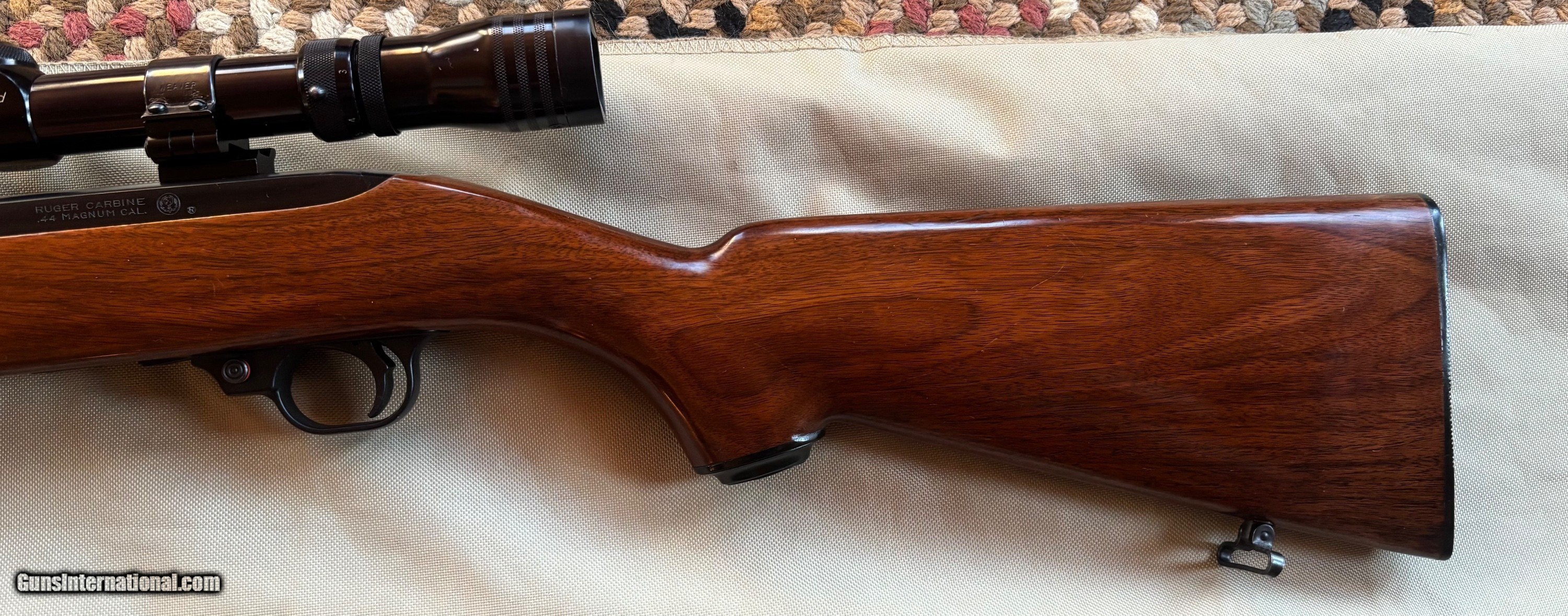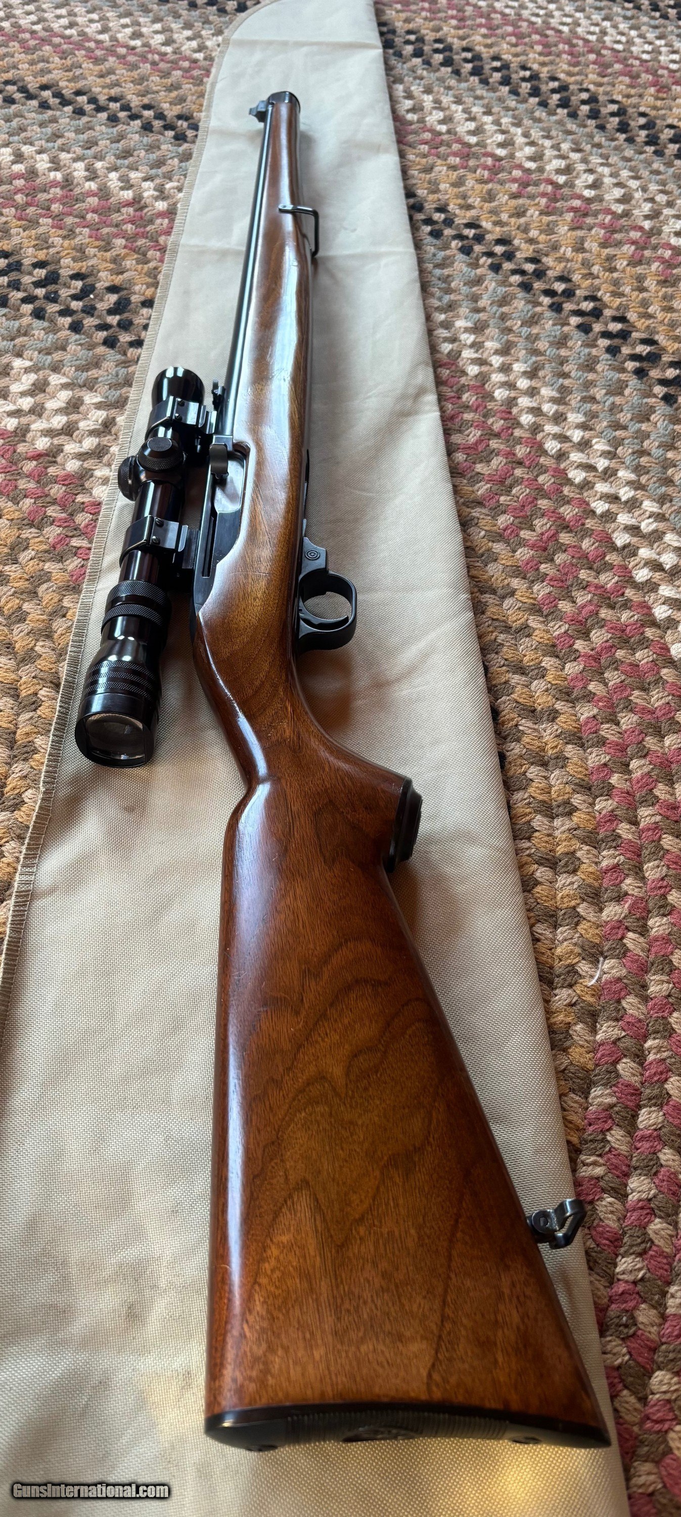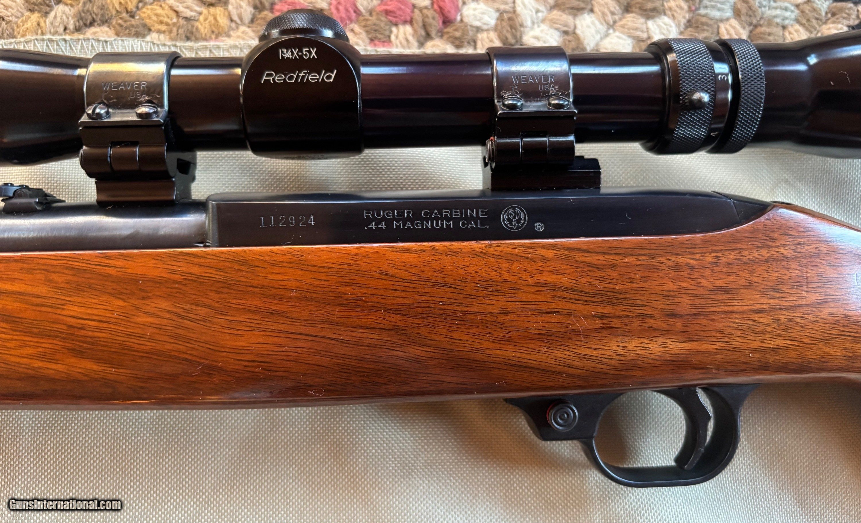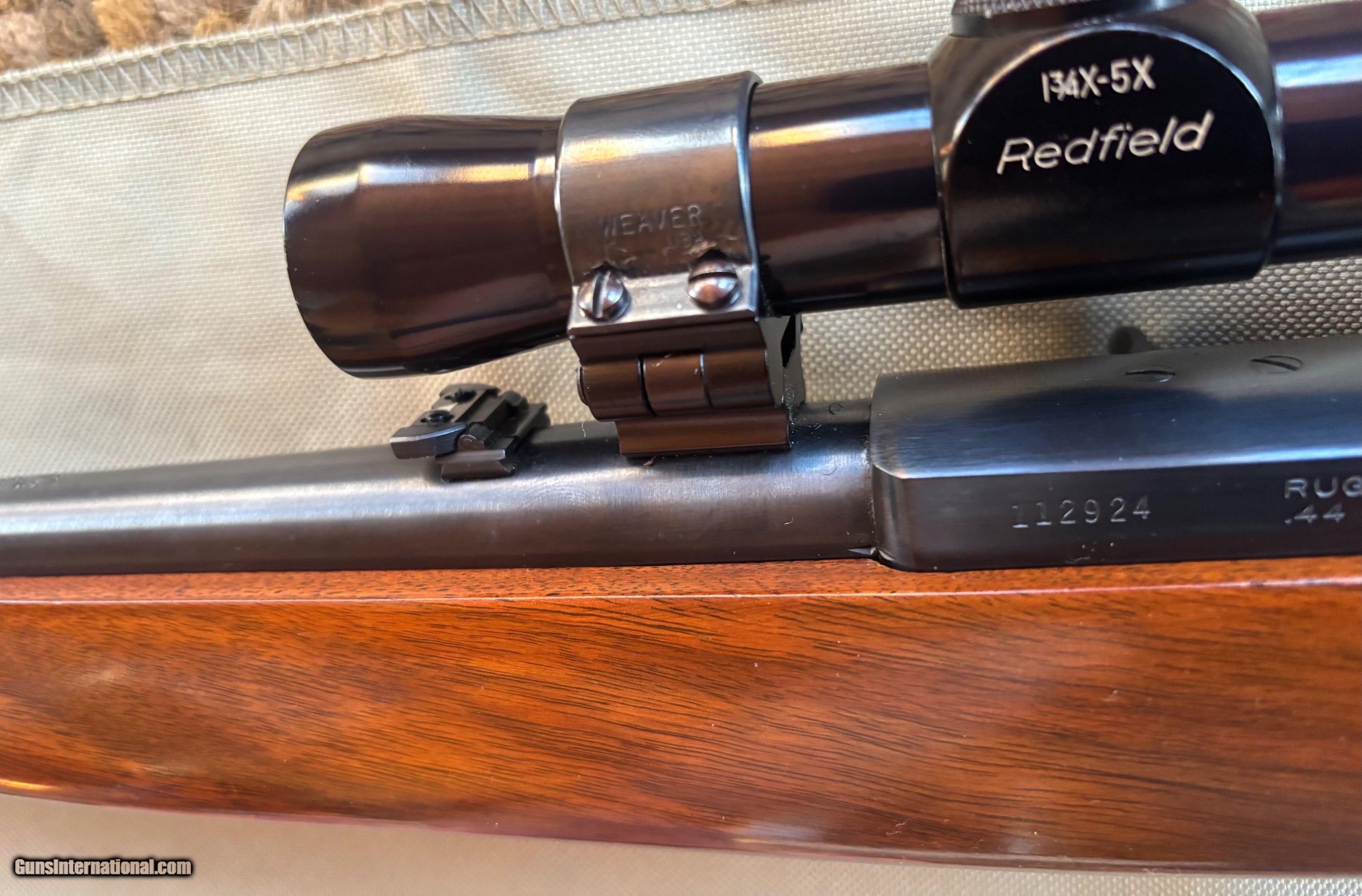 For sale is a very rare Ruger 44 mag variation. The internationals were only produced for two years from 1966 to 1967. This rifle is in excellent condition as you can tell from the photos and would be a great addition to anyone's collection. The the walnut grain and coloration varies slightly throughout the mannlicher stock in color. It has beautiful grain and retains it's original finish. It comes with Weaver rings and a wideview Redfield (1 3/4 x5) scope that is period correct. The bluing on the rifle and scope are original and in great condition. There are no cracks or deep scratches in wood, just a couple minor surface blemishes. The Ruger 44 carbines were produced from 1961 to 1984 and I believe less than 4000 were internationals. I would rate this firearm 95% which is impressive considering it's roughly 60 years old. It's a gem!