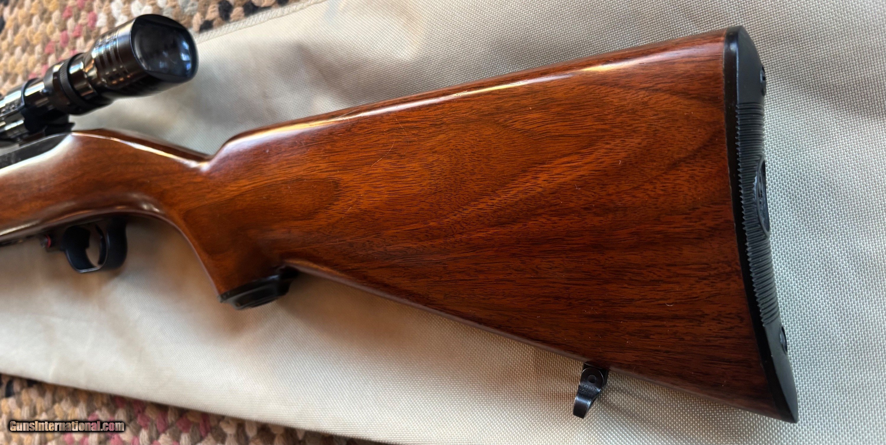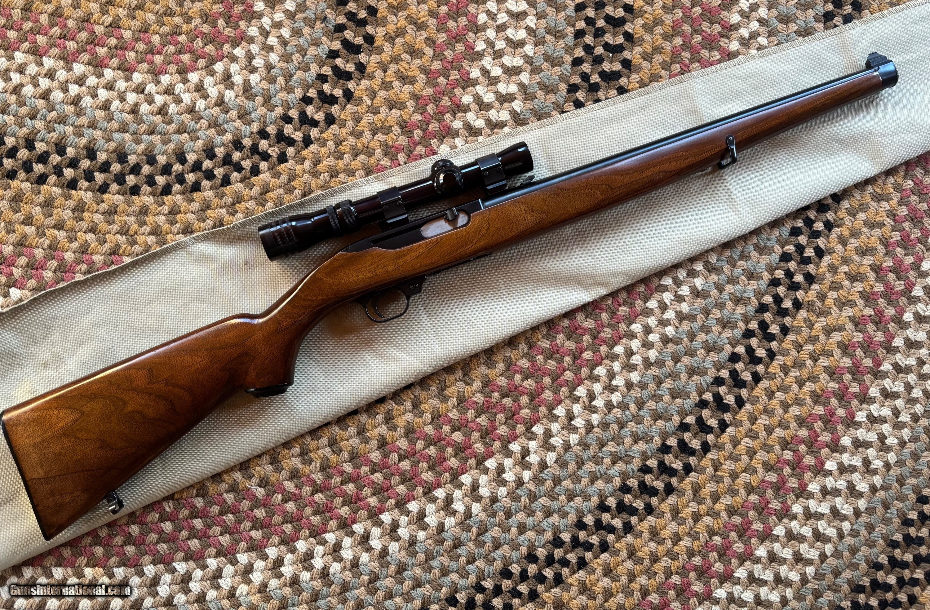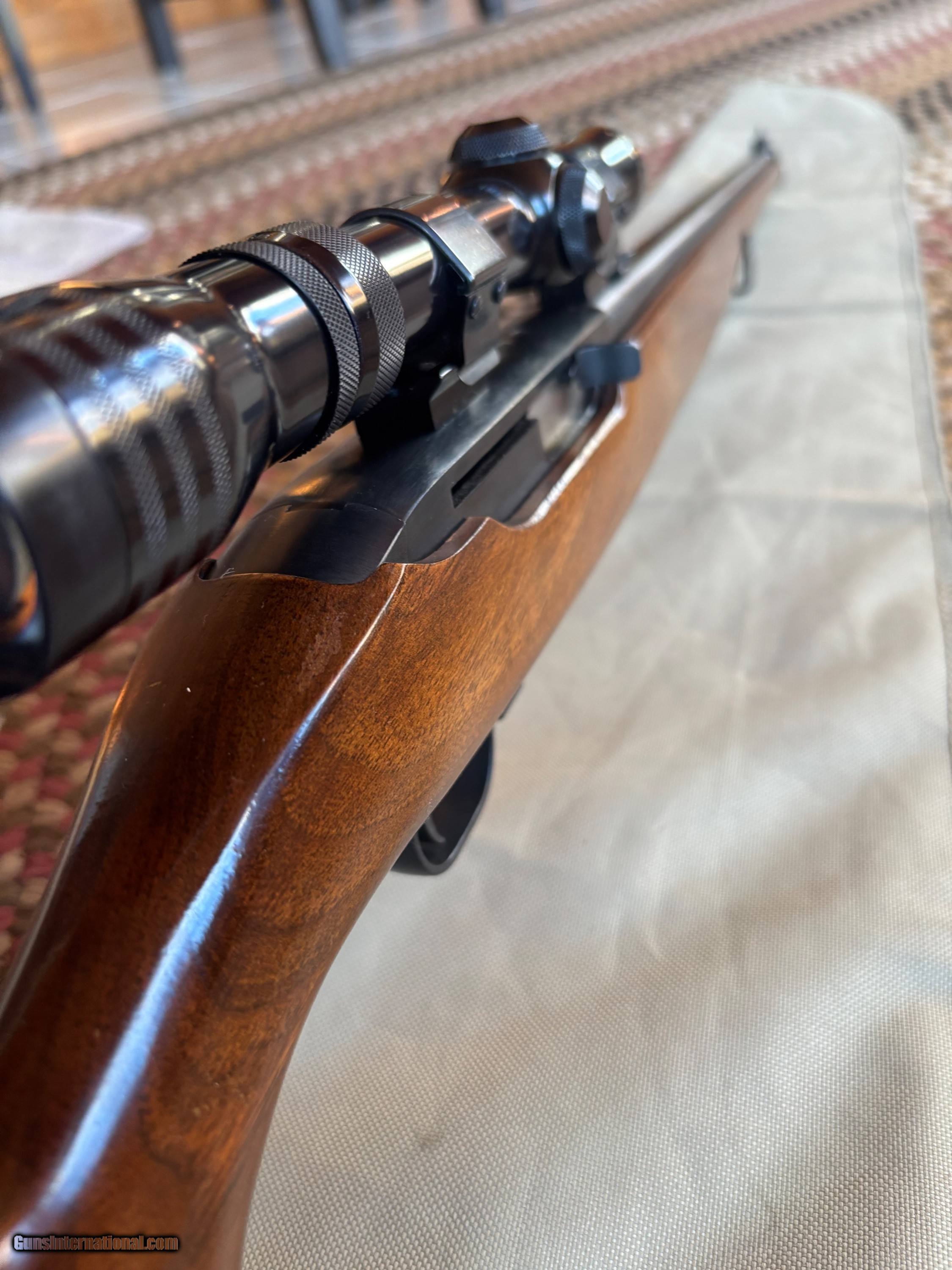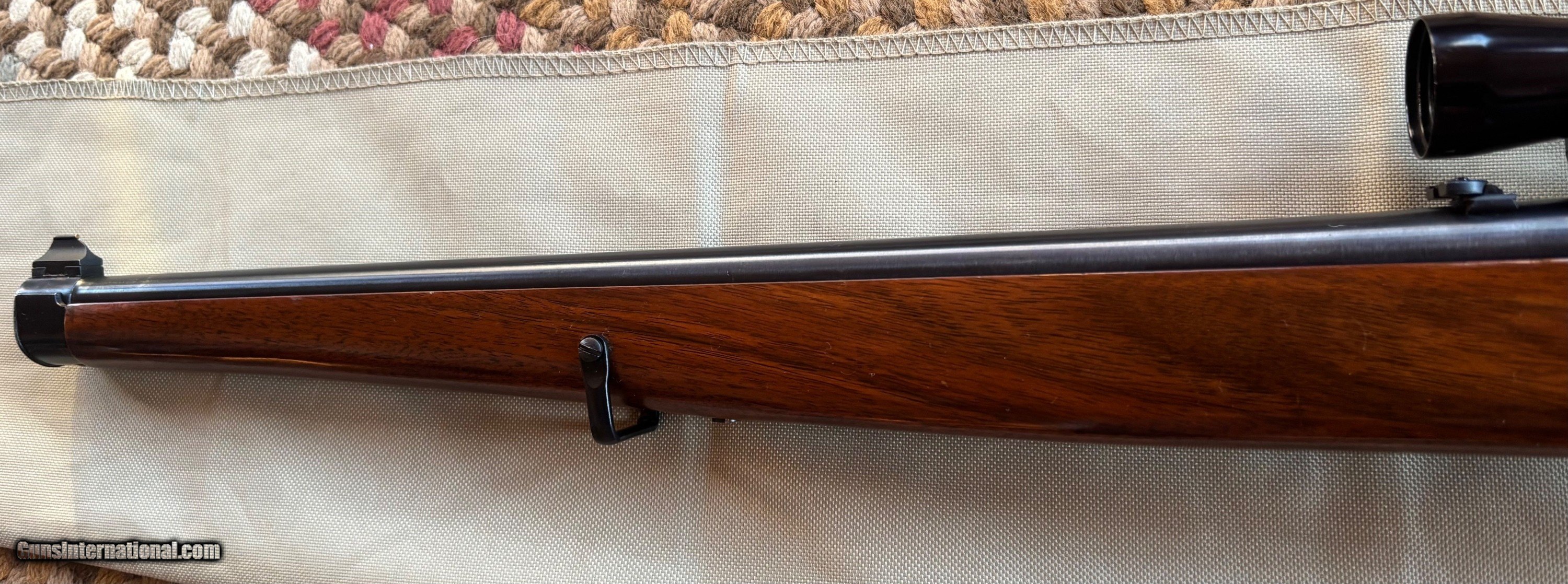 For sale is a very rare Ruger 44 mag variation. The internationals were only produced for two years from 1966 to 1967. This rifle is in excellent condition as you can tell from the photos and would be a great addition to anyone's collection. The the walnut grain and coloration varies slightly throughout the mannlicher stock in color. It has beautiful grain and retains it's original finish. It comes with Weaver rings and a wideview Redfield (1 3/4 x5) scope that is period correct. The bluing on the rifle and scope are original and in great condition. There are no cracks or deep scratches in wood, just a couple minor surface blemishes. The Ruger 44 carbines were produced from 1961 to 1984 and I believe less than 4000 were internationals. I would rate this firearm 95% which is impressive considering it's roughly 60 years old. It's a gem!
