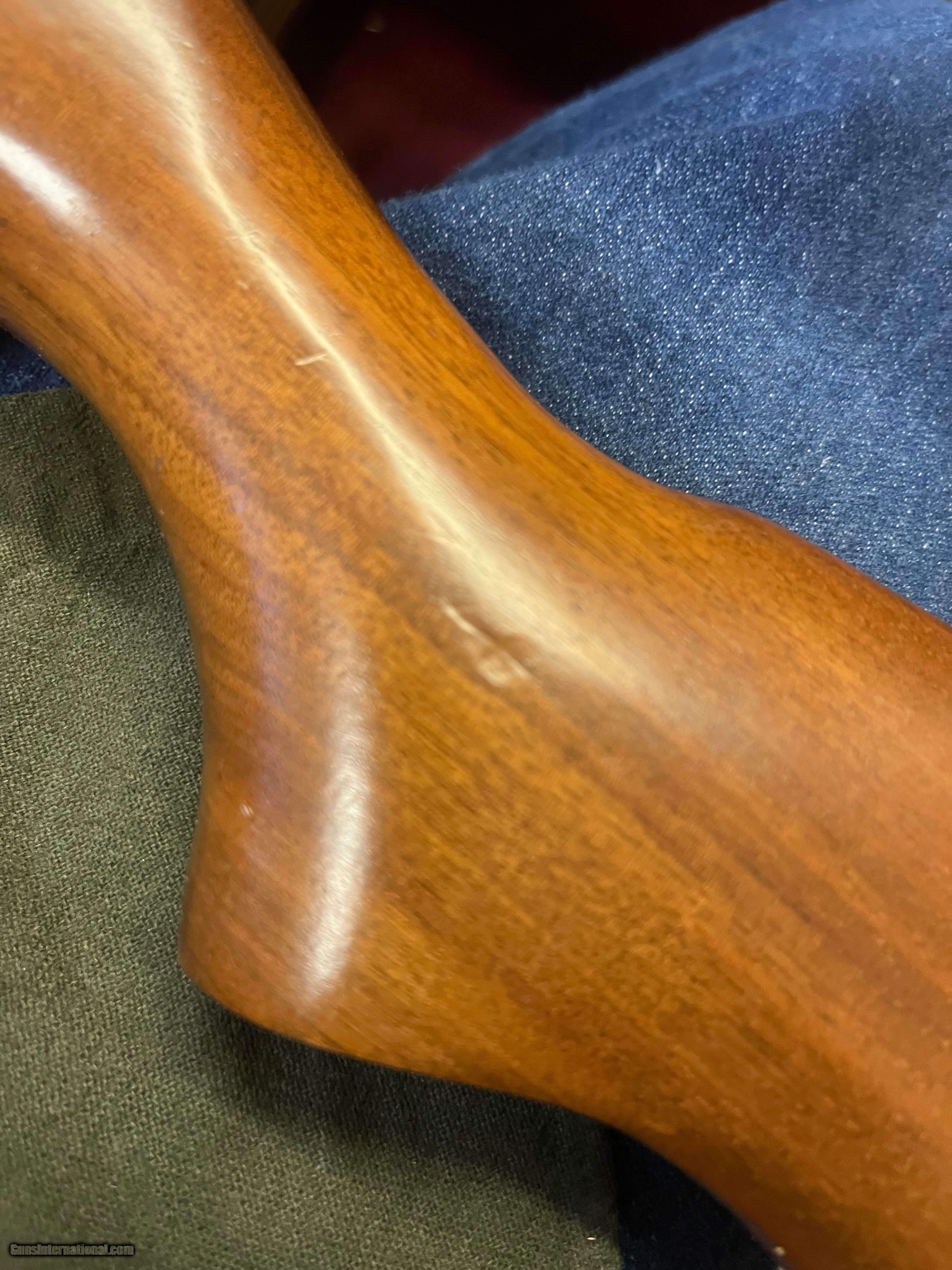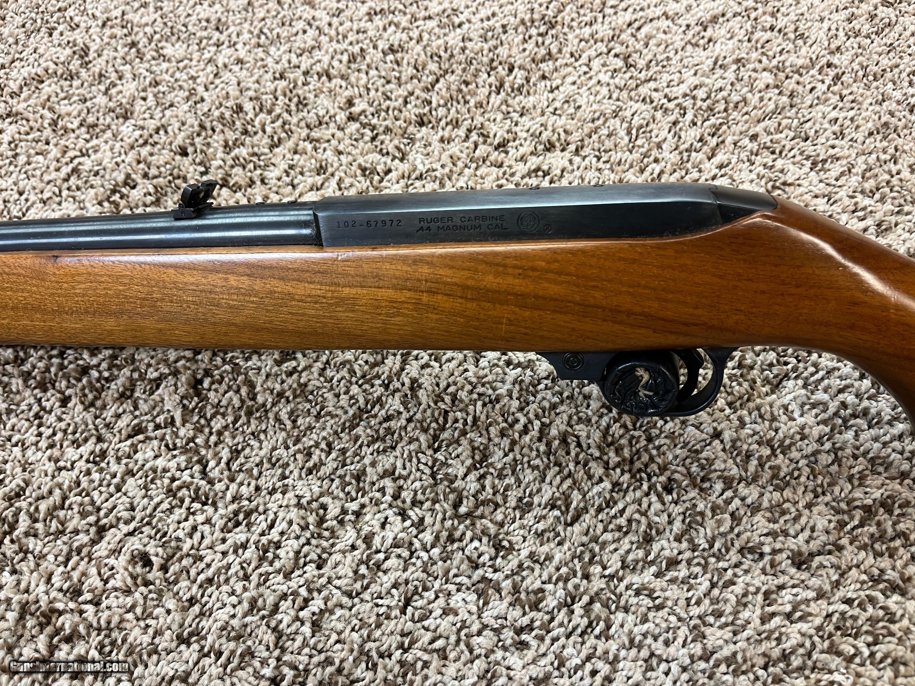 Description: For sale is a used Ruger .44 magnum carbine, 4 Round Tube Fed Semi-Auto. Made in 1979, serial number 102-67972. Barrel measures 18 inches from muzzle to front of receiver. Open sights are still there and has sling studs installed. It has few flaws as pictured making it still a very nice vintage carbine. If you need more information or photos, please contact us. These are consignment firearms, and the owner receives the funds. Personal Checks accepted, Bank Checks or Money Orders. We are an FFL Dealer so please be aware of your Federal & State laws before buying. The buyer pays the exact shipping & insurance cost for shipment of firearm, with tracking information. SOLD Rifle Caliber: .44 Magnum Manufacturer: Ruger Model: Carbine Serial Number: 102-67972 Barrel Length: 18 Action: semi Manufacture Date: 1979 |