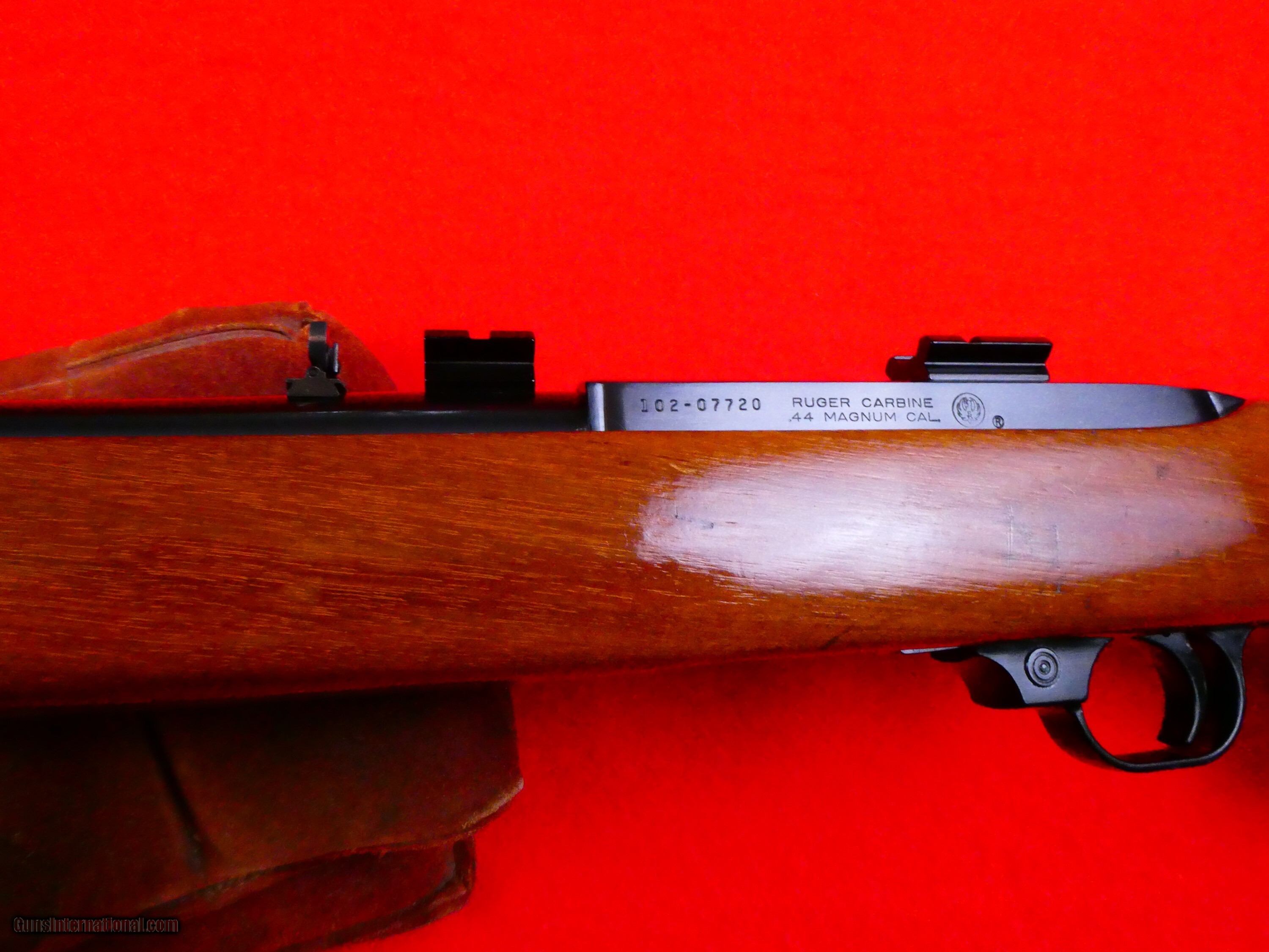 Description: Ruger .44 Mag Carbine, Semi-Auto, Per warning, Made in 1975, 18 1/2 inch barrel, Open sights bead post front fold down rear, Four shot tube feed magazine, Scope base, Sling studs, Curved metal butt plate, Stock and bluing are excellent, Bore is excellent, Functions properly, Mfg. from 1961-1985 .Carbine is in ecellent condition has not had much use. Layaway Available Price: $1,875.00 Contact Seller |