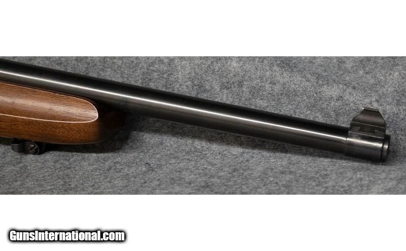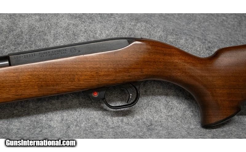Description: This Ruger Model Carbine is a right hand semi-auto rifle in .44 Magnum Cal. It has an 18 inch barrel. A raised blade front sight with a brass bead, folding adjustable notch middle sight and is drilled and tapped for a scope mount. The butt stock is a smooth grip hardwood pistol grip. The forearm is a smooth grip hardwood. SKU: 4680263 .44 Magnum SOLD Chambers: .44 Magnum Metal Condition: Excellent Wood Condition: Excellent Barrels: 18 Inch barrel Triggers: Factory trigger Stock Dimensions: 13 Inch L.O.P. Fore End: Smooth Butt Pad: Curved plastic butt plate Weight: 7 lbs. Sights: "Folding rear, bead front sights Item Location: Grandville, MI |