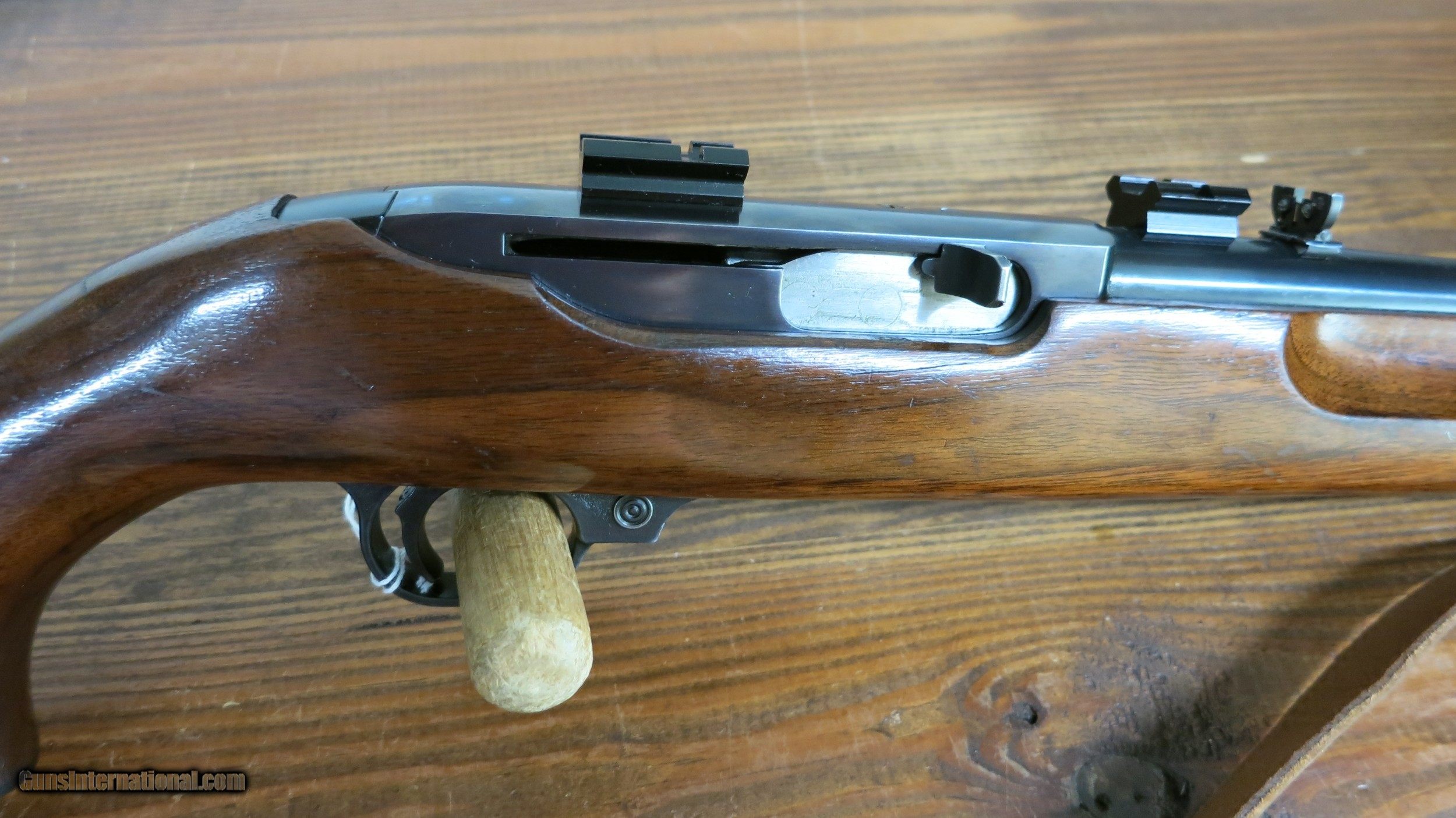 Description: "SALE PENDING" RUGER CARBINE FINGER GROVE .44 MAG. NO DASH SN. #86880. EXCELLENT CONDITION. TRULY A SAFE QUEEN. 18" BARREL WITH EXCELLENT BORE, FIXED FRONT SIGHT & FLIP-UP ADJUSTABLE REAR. COMES WITH A VORTEX DIAMONDBACK 3-9x40 SCOPE STILL IN THE BOX. 98% FINISH ON BLUE & WOOD. THIS IS THE BEST WOOD I HAVE EVER SEEN ON ONE OF THE CARBINES. RUGER BLACK PLASTIC BUTT PLATE & RUGER EMBLEM ON PISTOL GRIP. ONE OF THE EARLY RUGER CARBINES & IN GREAT CONDITION. USED & SHOT VERY LITTLE. CALL OR E-MAIL WITH QUESTIONS: SOLD |