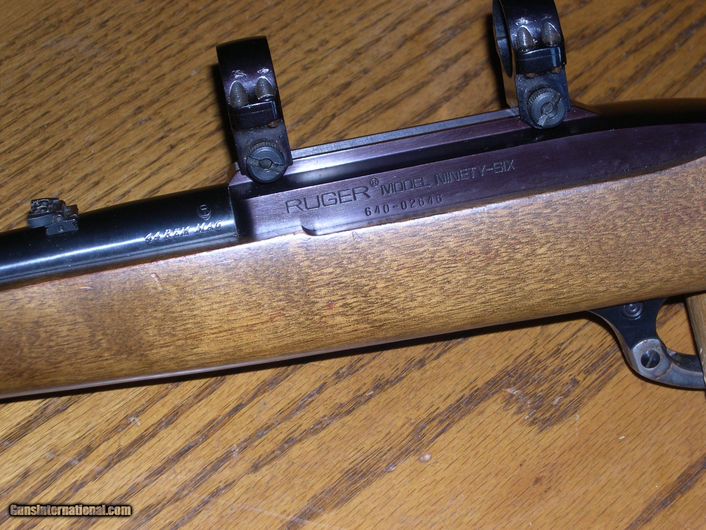 Description: Ruger model 96 Carbine 18" Bbl, 99.9% condition, with two magazines, and original scope rings, I doubt, if ever hunted with ! Also shoots 44 special, for a fun gun and at the range !! Hard to find a better one, I have one NIB also ! SOLD |